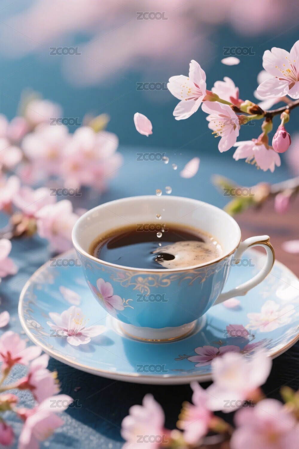 传统中式园林湖边一杯咖啡和曲奇饼干