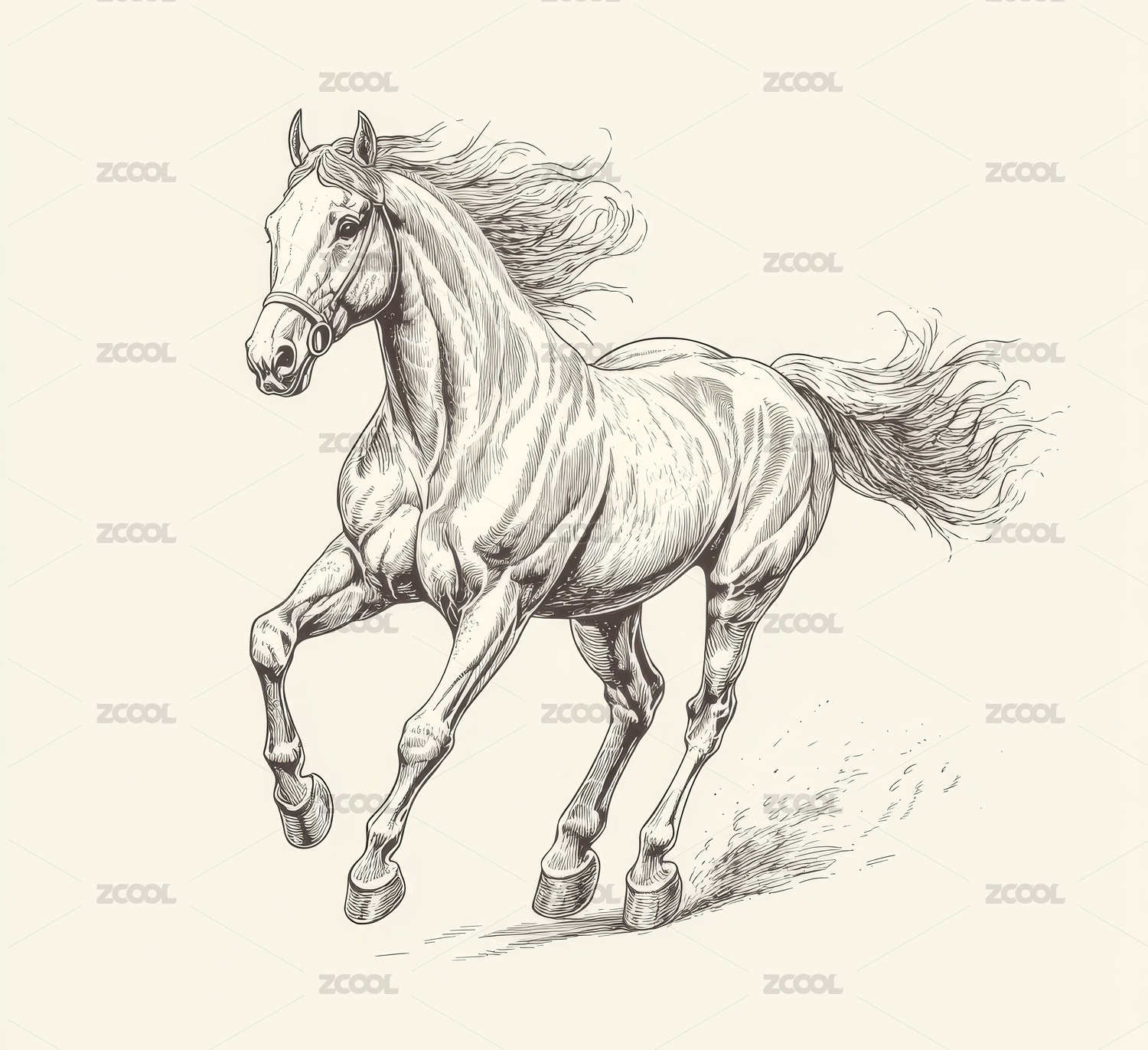 奔腾骏马素描艺术插画