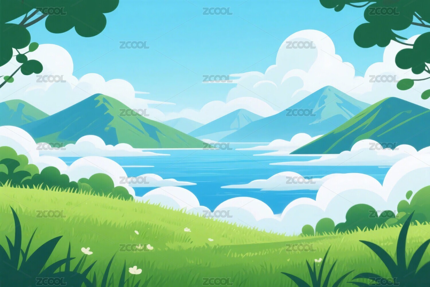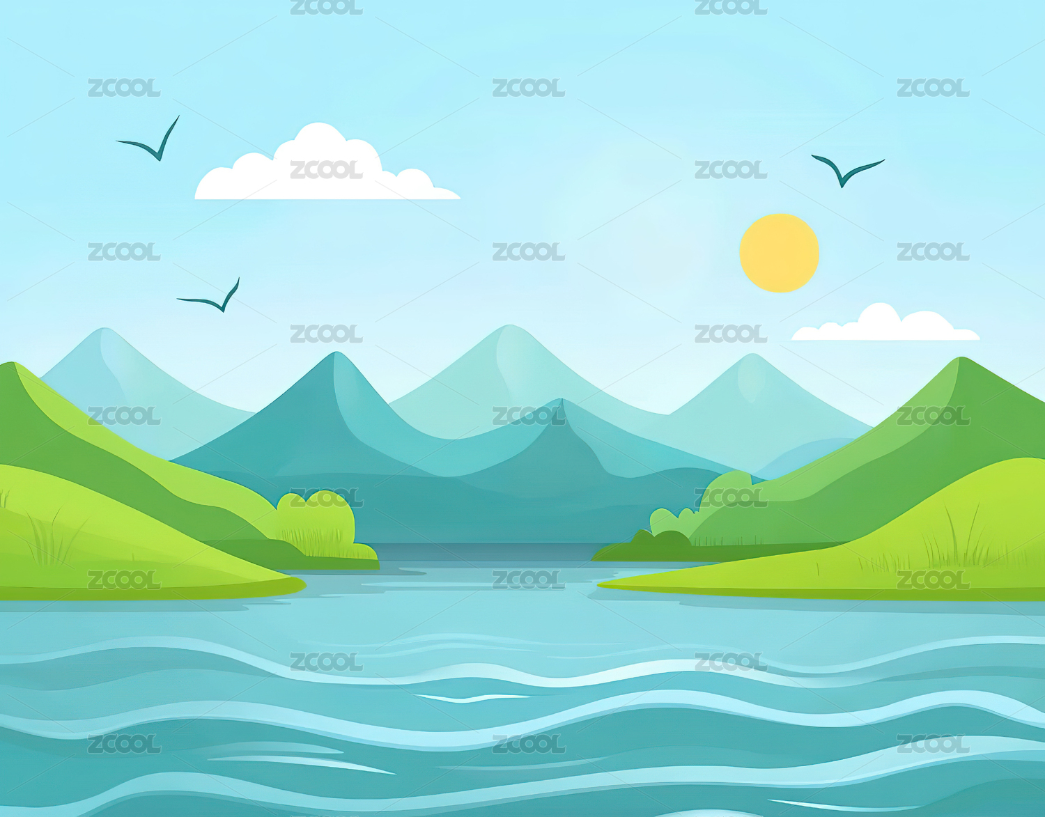 背景,扁平,插画,初夏,大暑,大自然,淡雅,风光,风景,海报