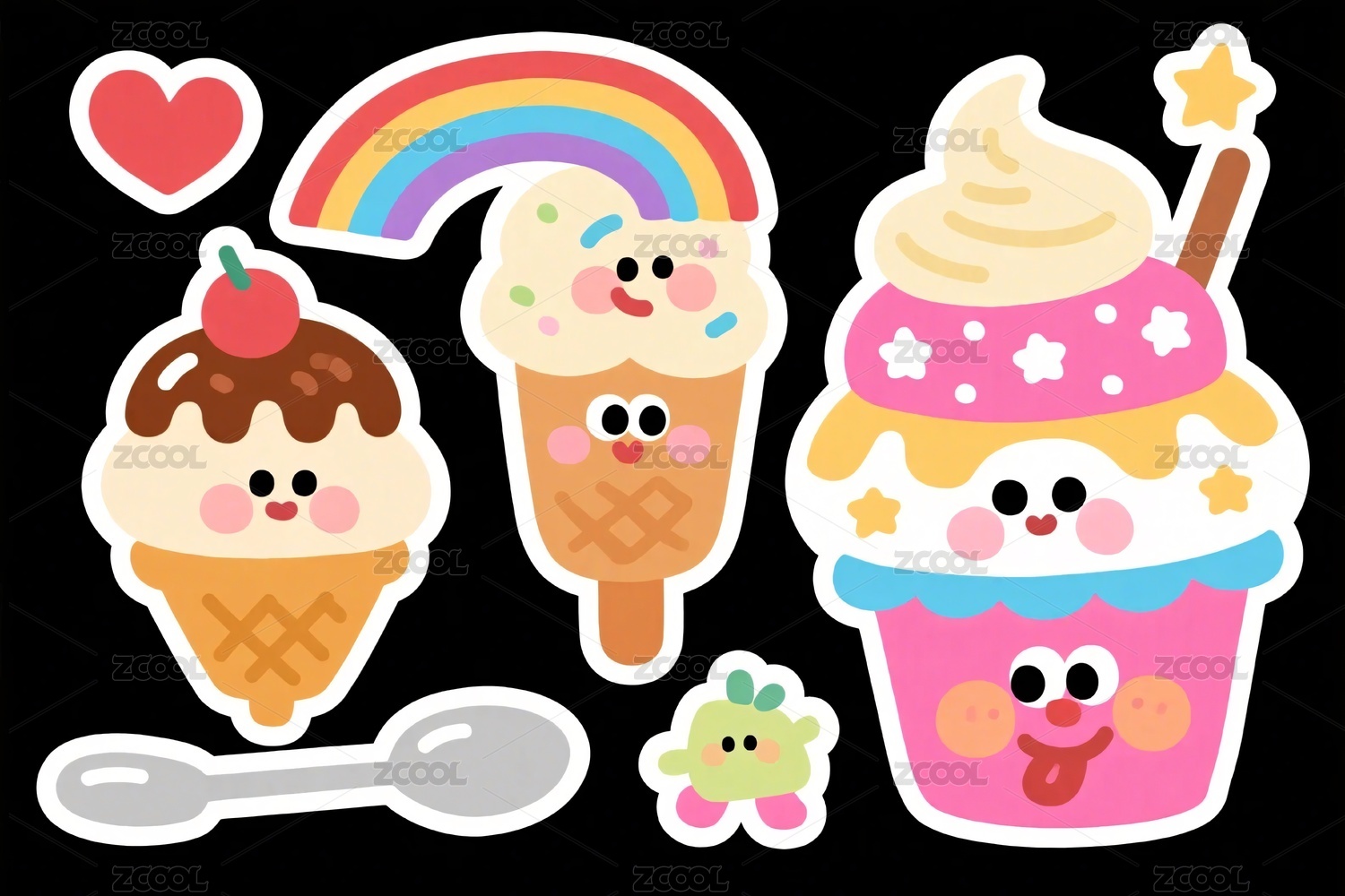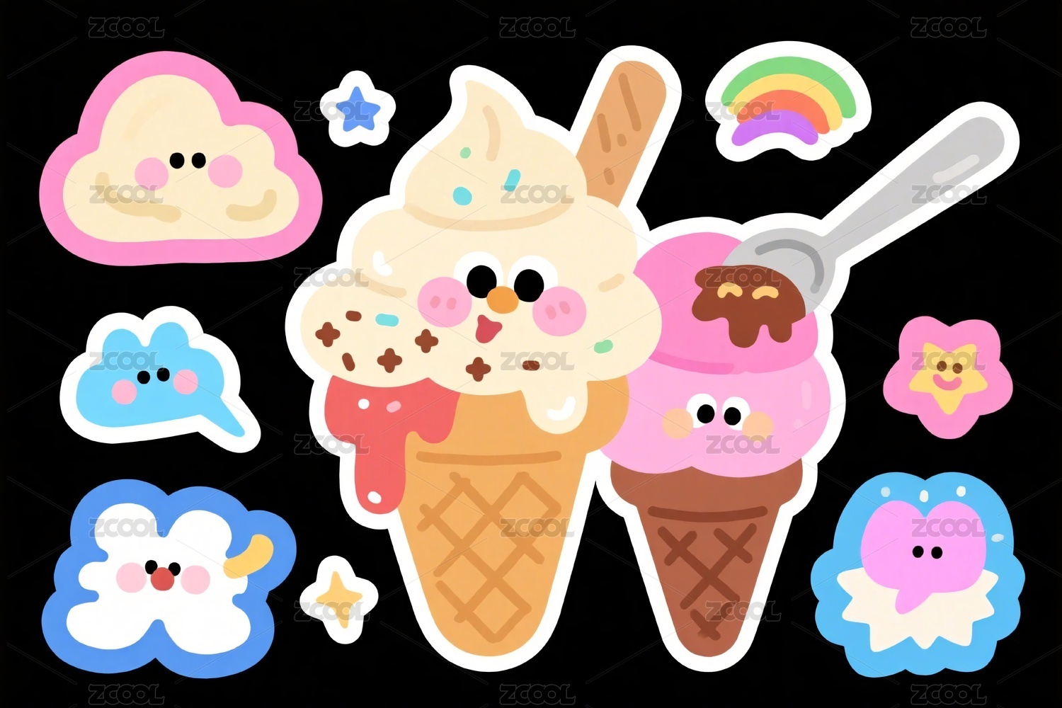 手绘插画平铺背景可爱卡通小熊橙子草莓冰棍