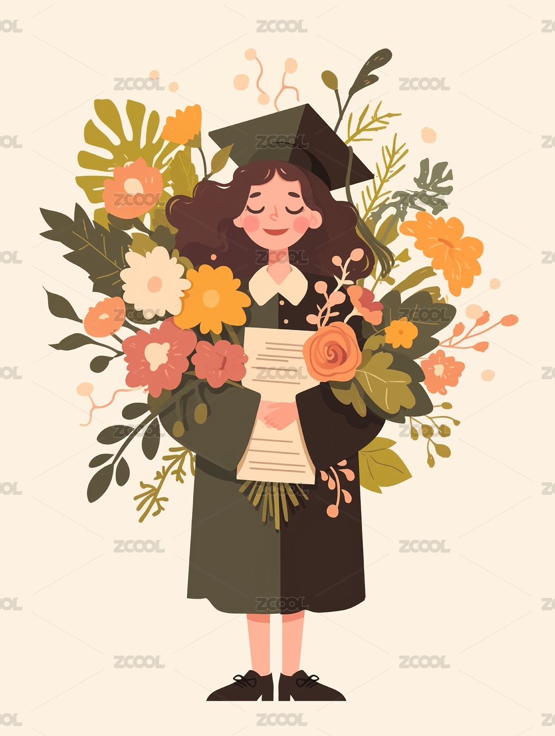 毕业季,学生,毕业,博士帽,人,角色,鲜花,扁平,插画,开心