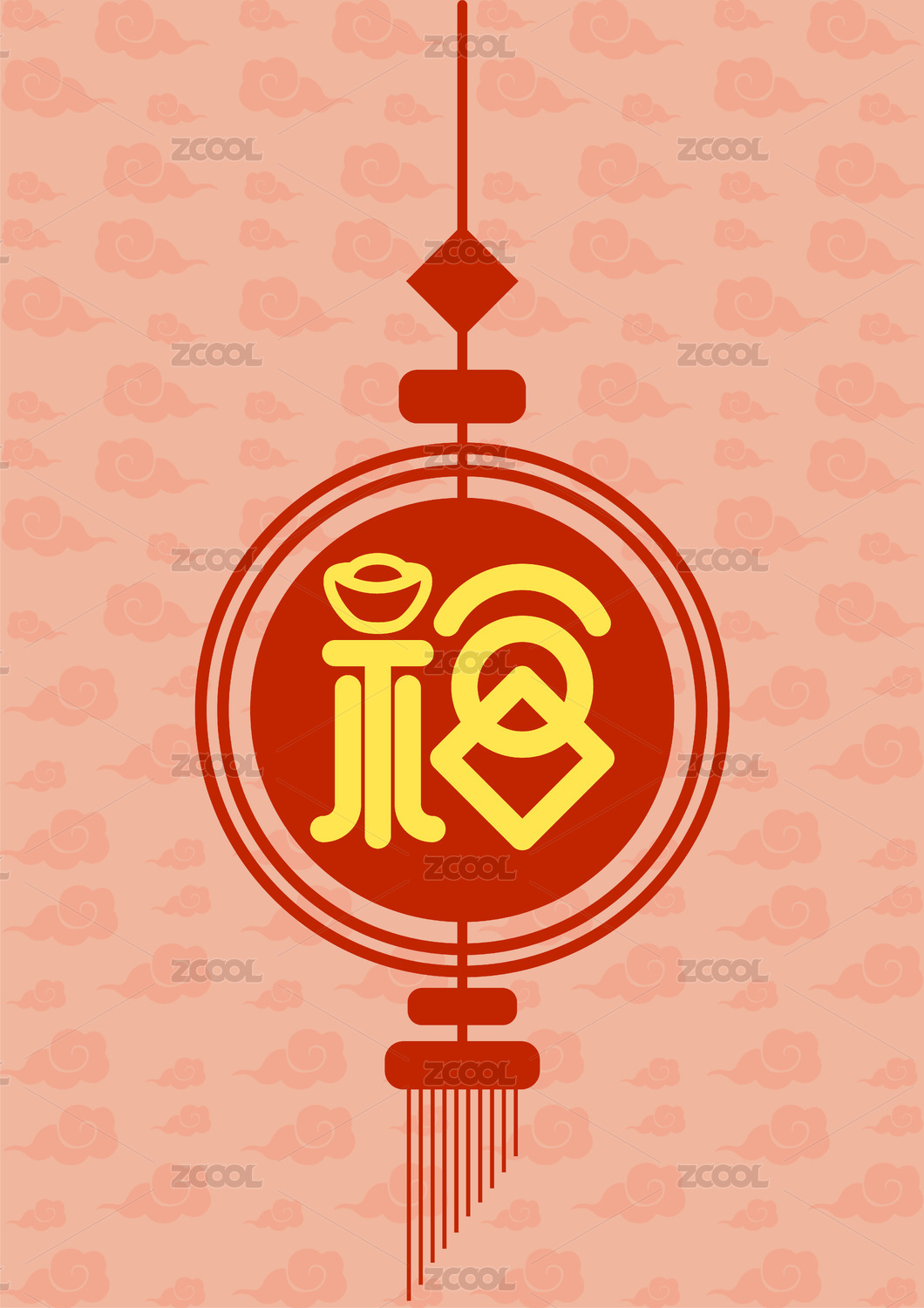 手写手绘汉字福字灯笼艺术字门贴矢量插画