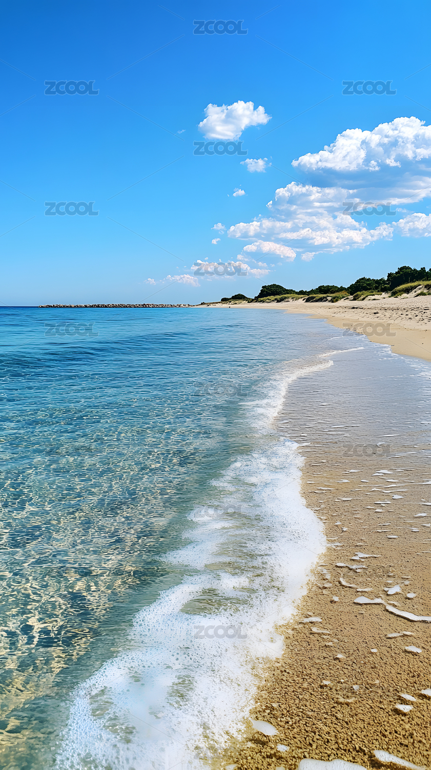 蓝天白云下美丽的海滩