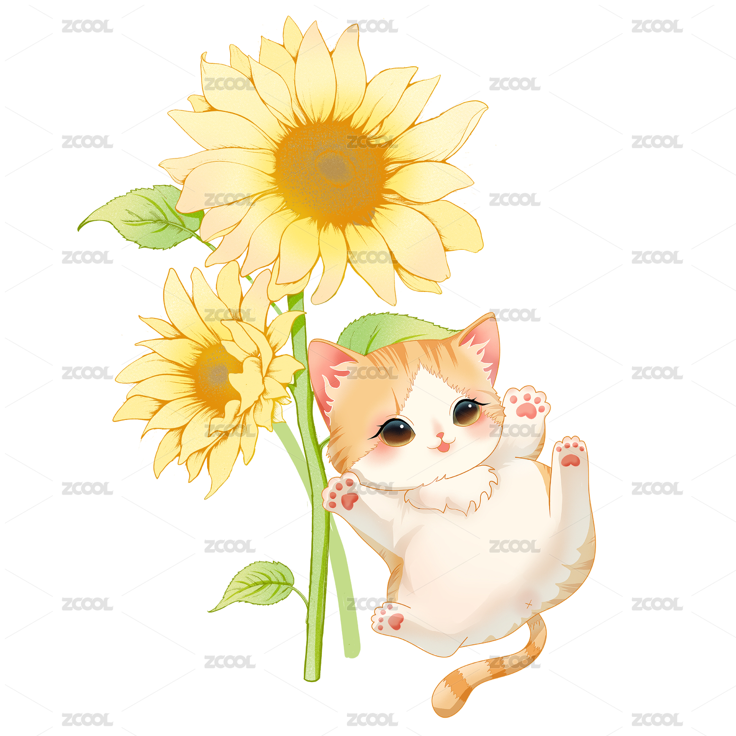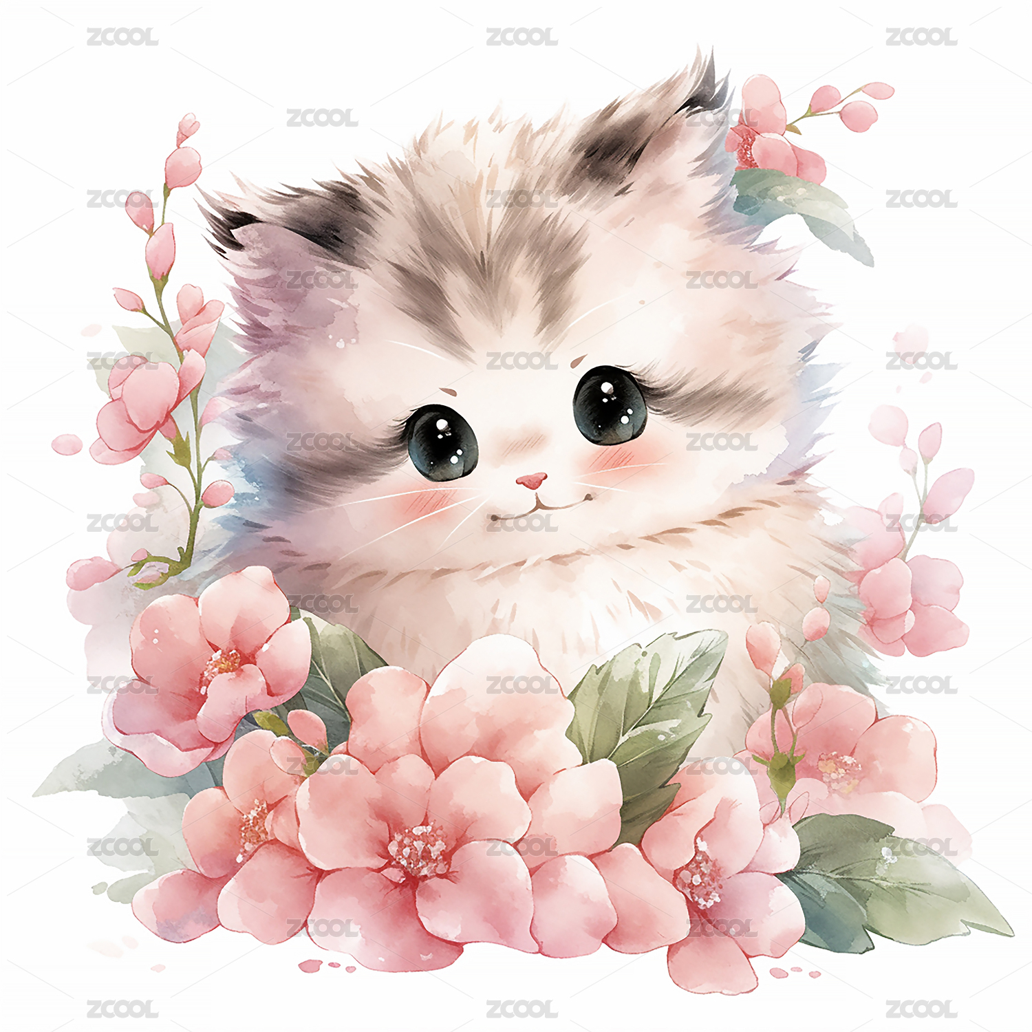 可爱猫咪在牡丹花丛中蝴蝶谷雨节气插画