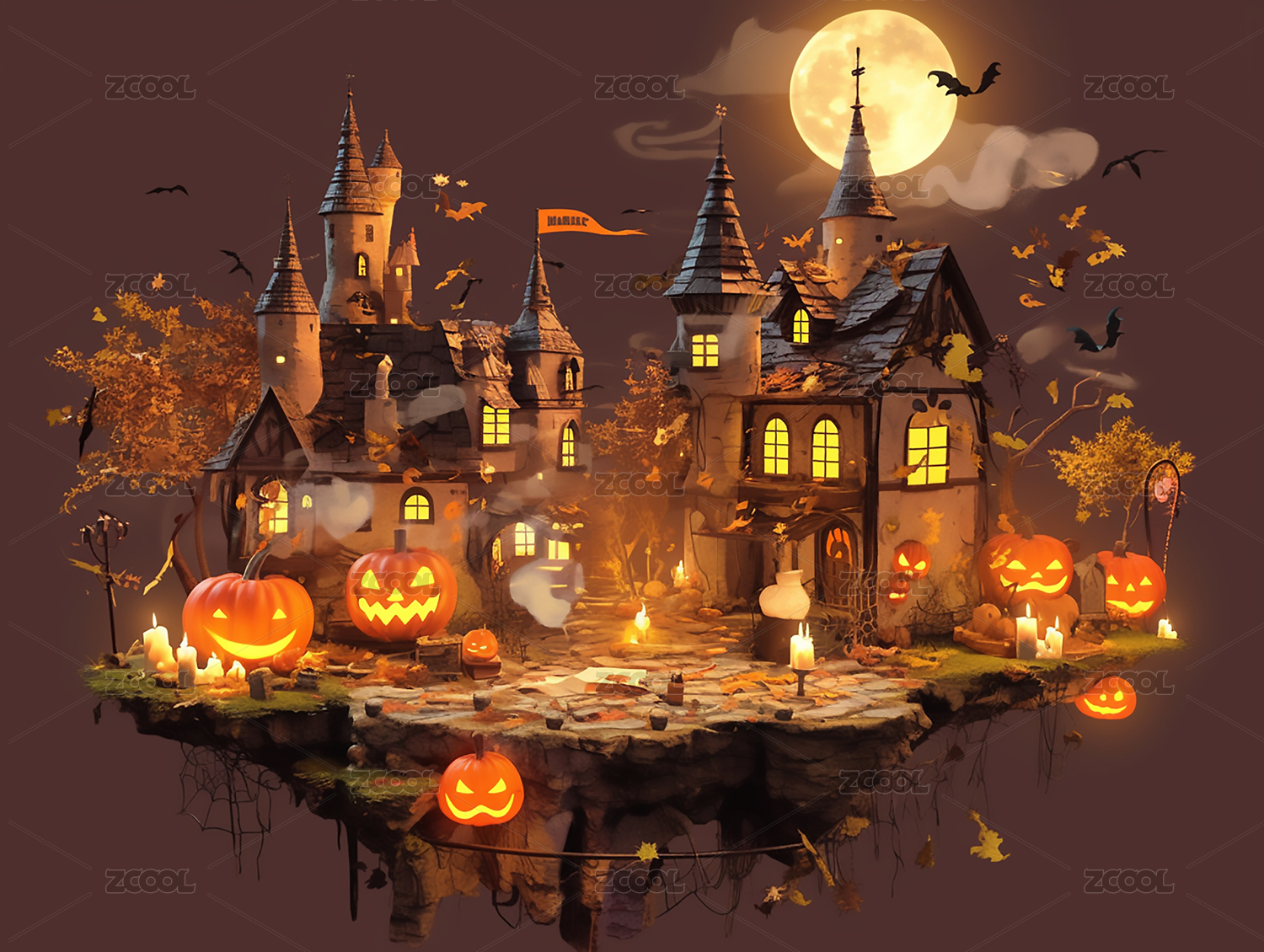 万圣节,空心南瓜灯,城堡,庆祝,蝙蝠,万圣节元素,节日,装扮,手绘,插画