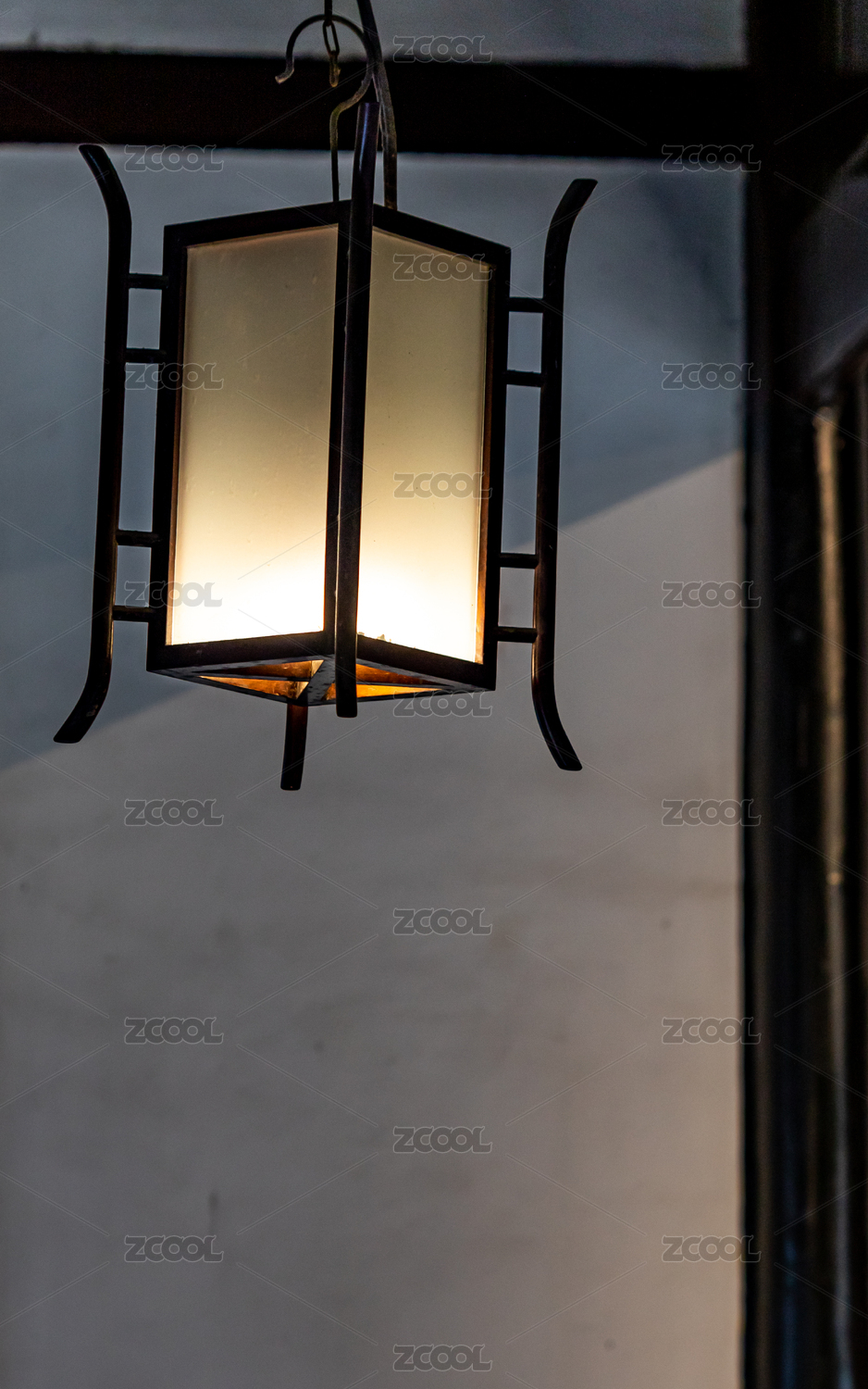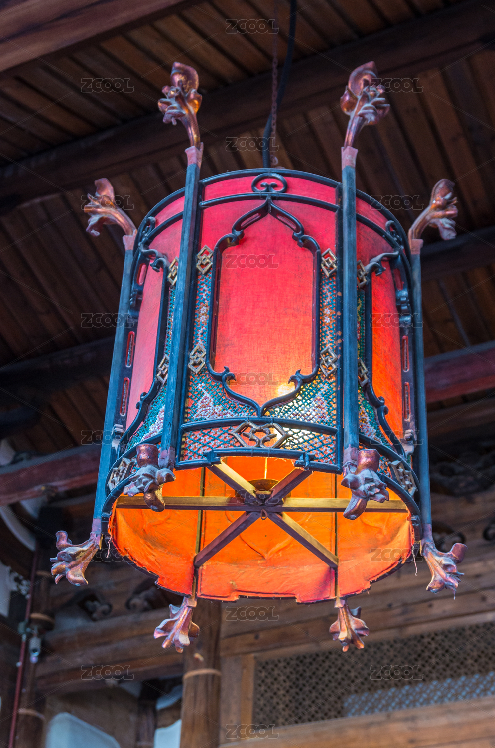 古代木制建筑里的灯笼,门前挂着灯笼的寺院