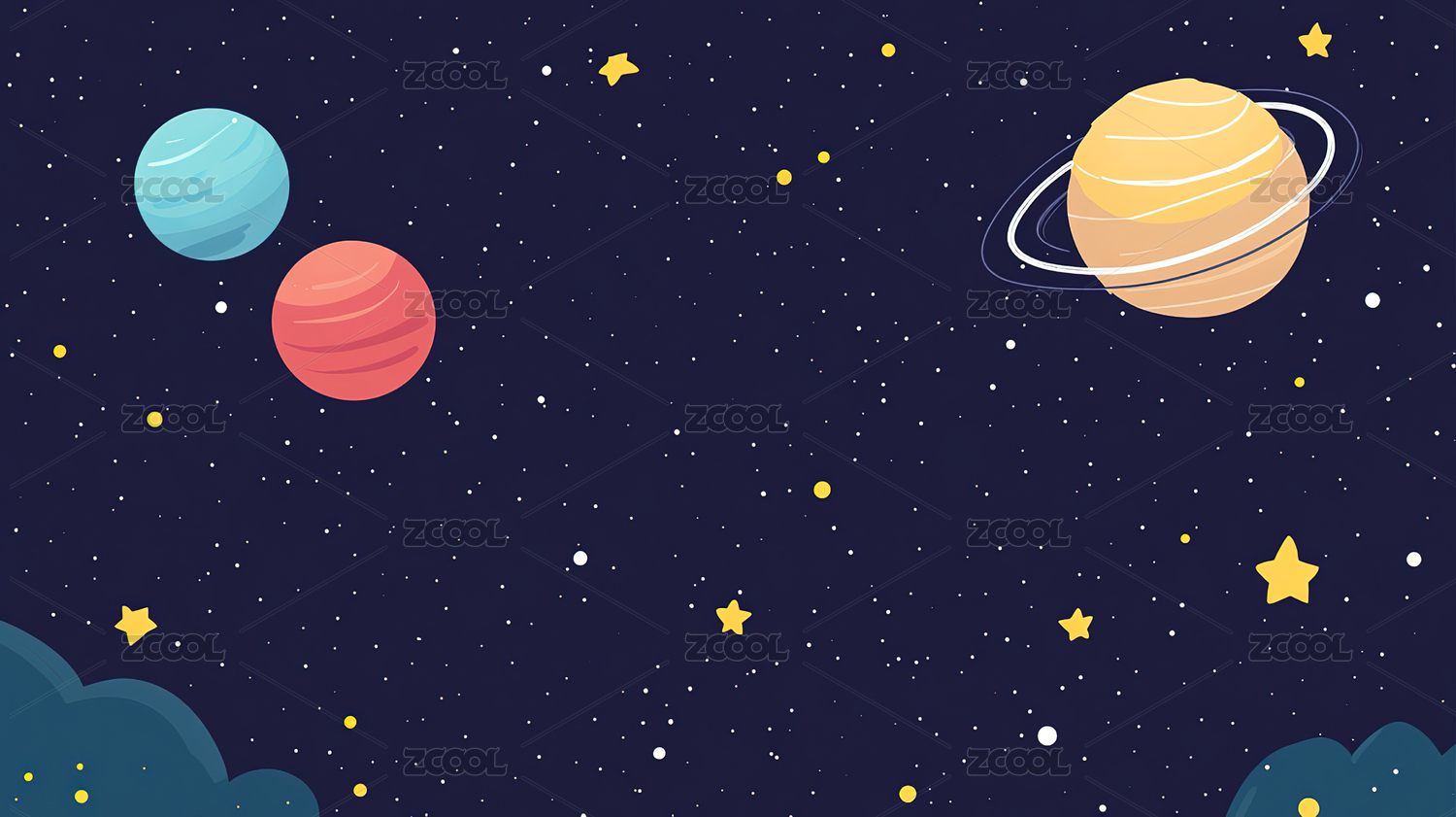 星空背景下的手绘插画