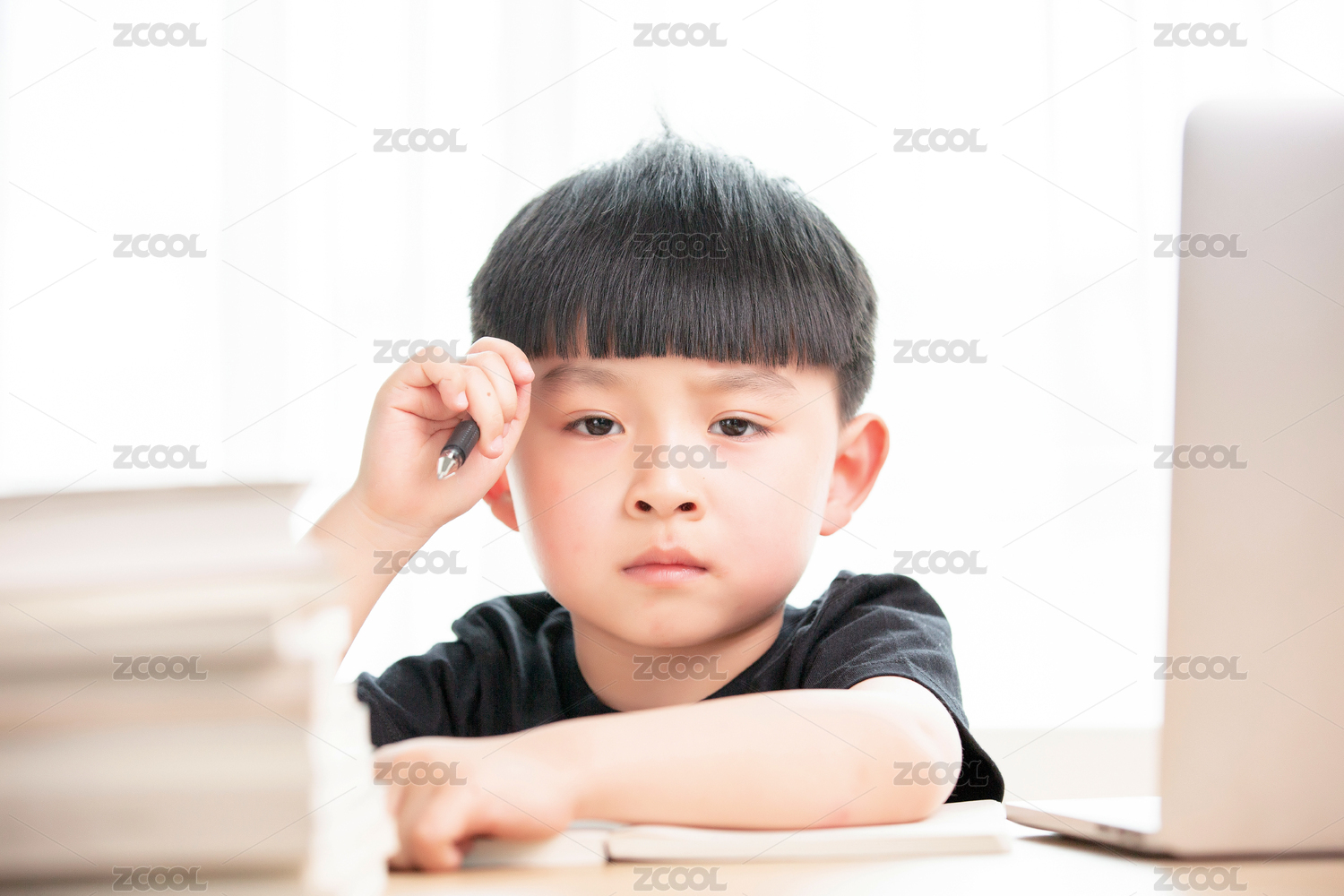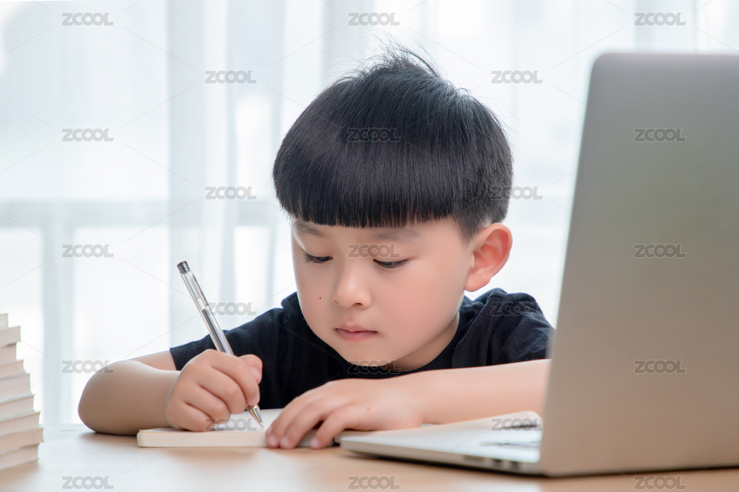 正在上网课的亚洲小男孩