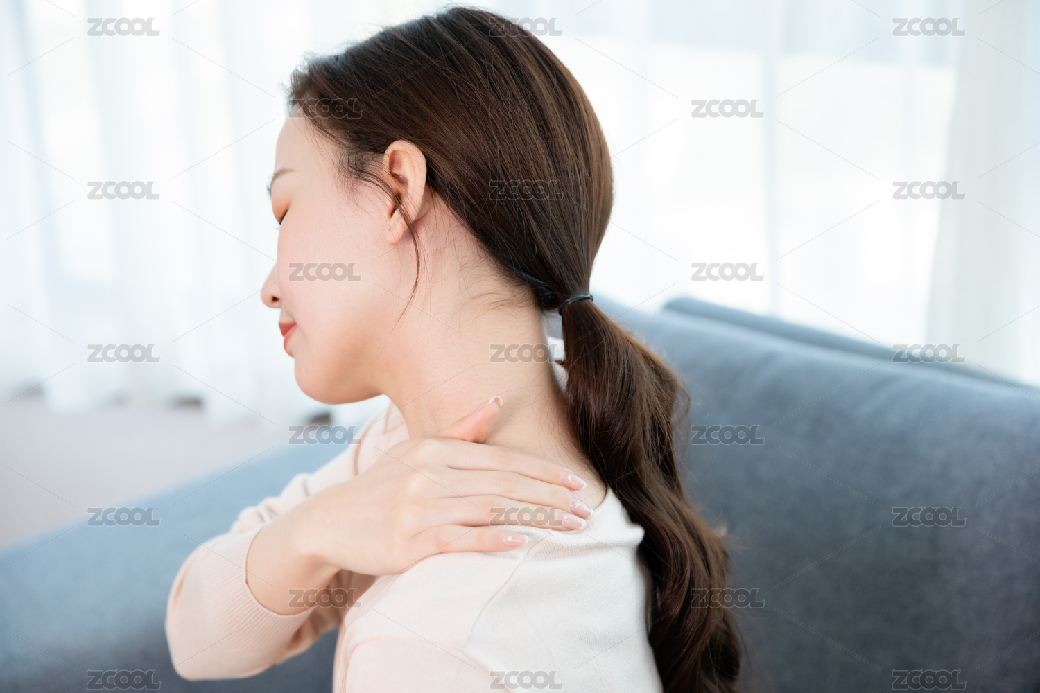 年轻女性肩颈不适疼痛