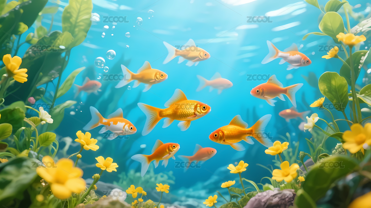 海底,蓝色,海洋,鱼,彩色,平面,海报,插画,背景,壁纸