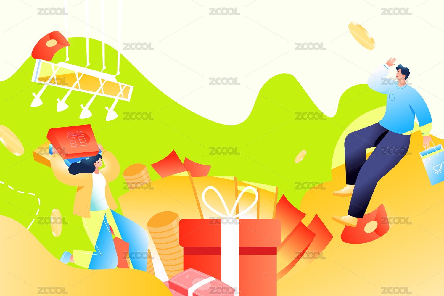 卡通清新白色情人节情侣电商促销活动背景矢量插画