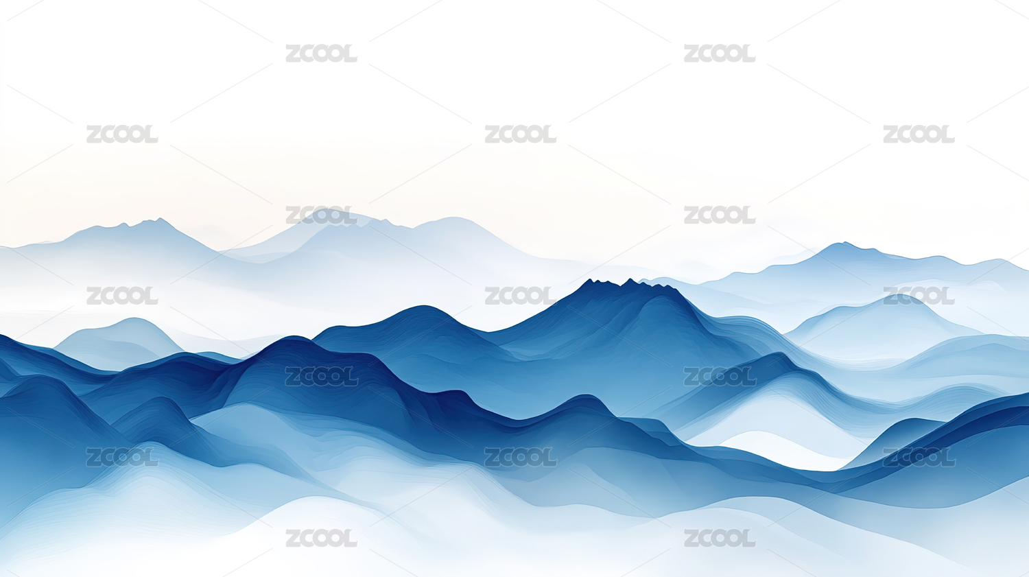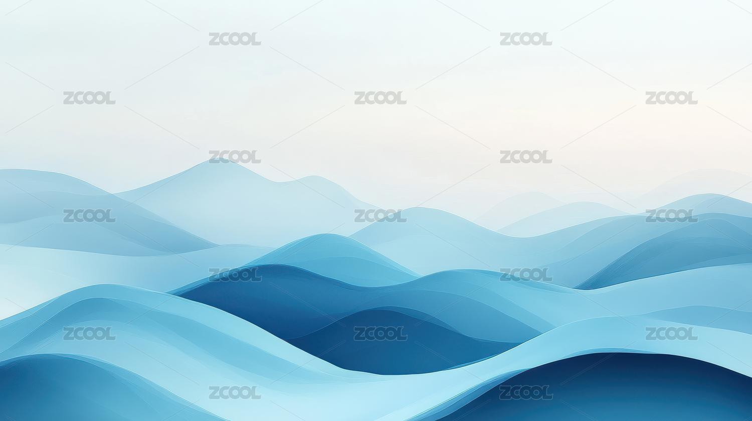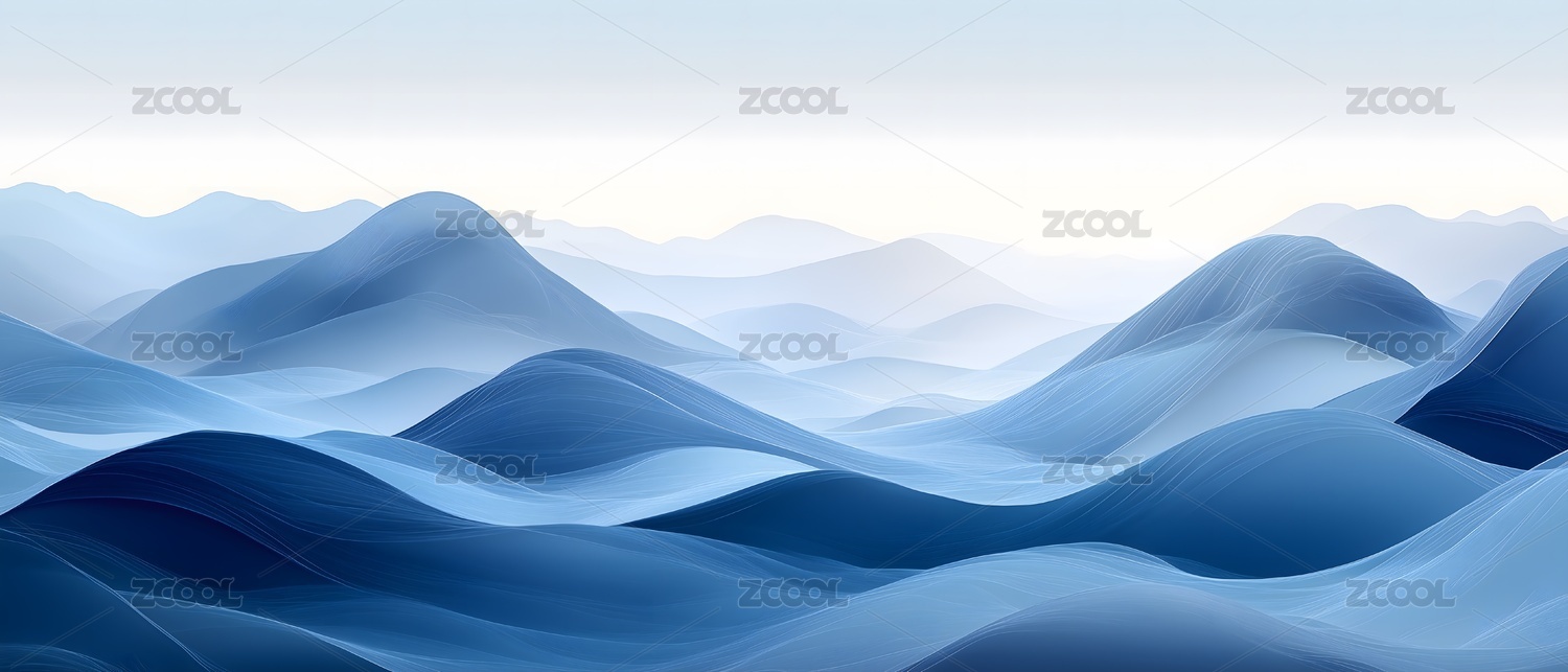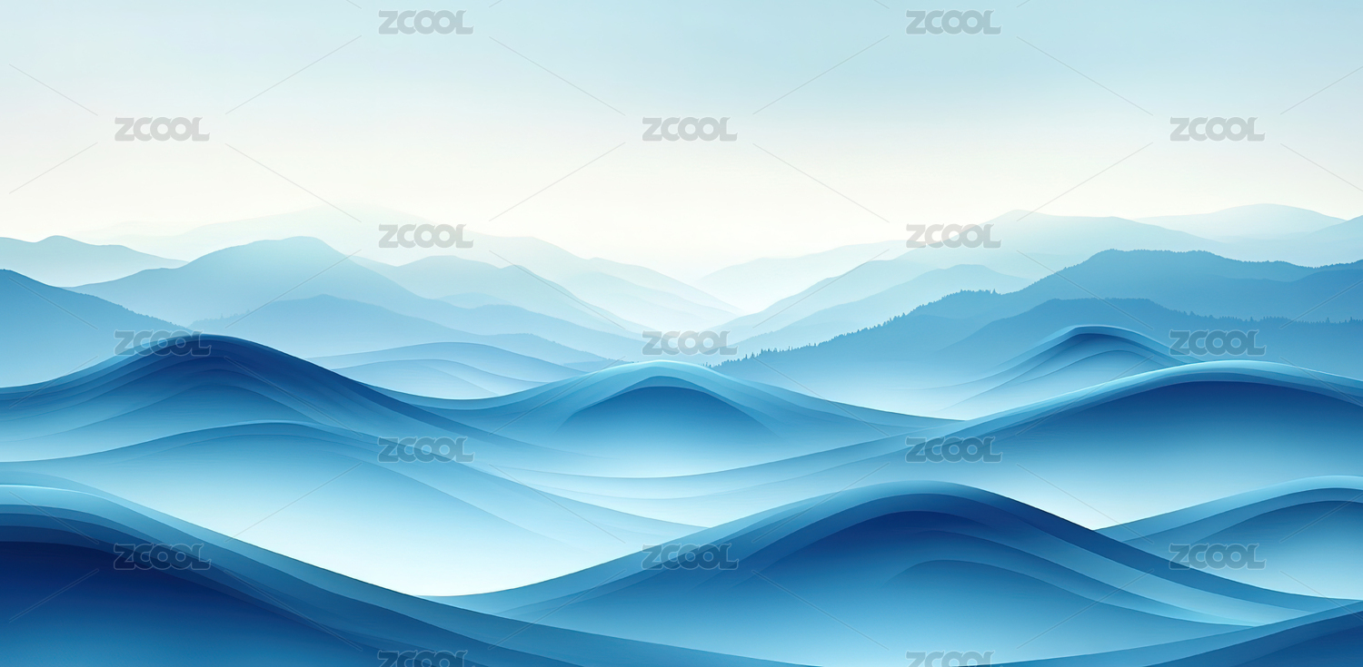蓝色波浪山脉抽象背景,简约而富有层次感