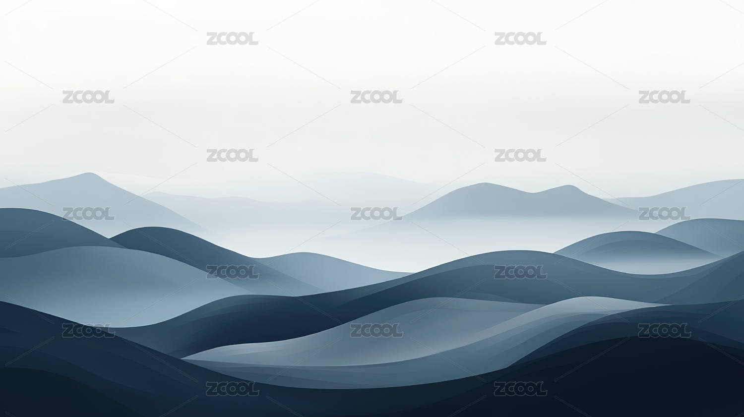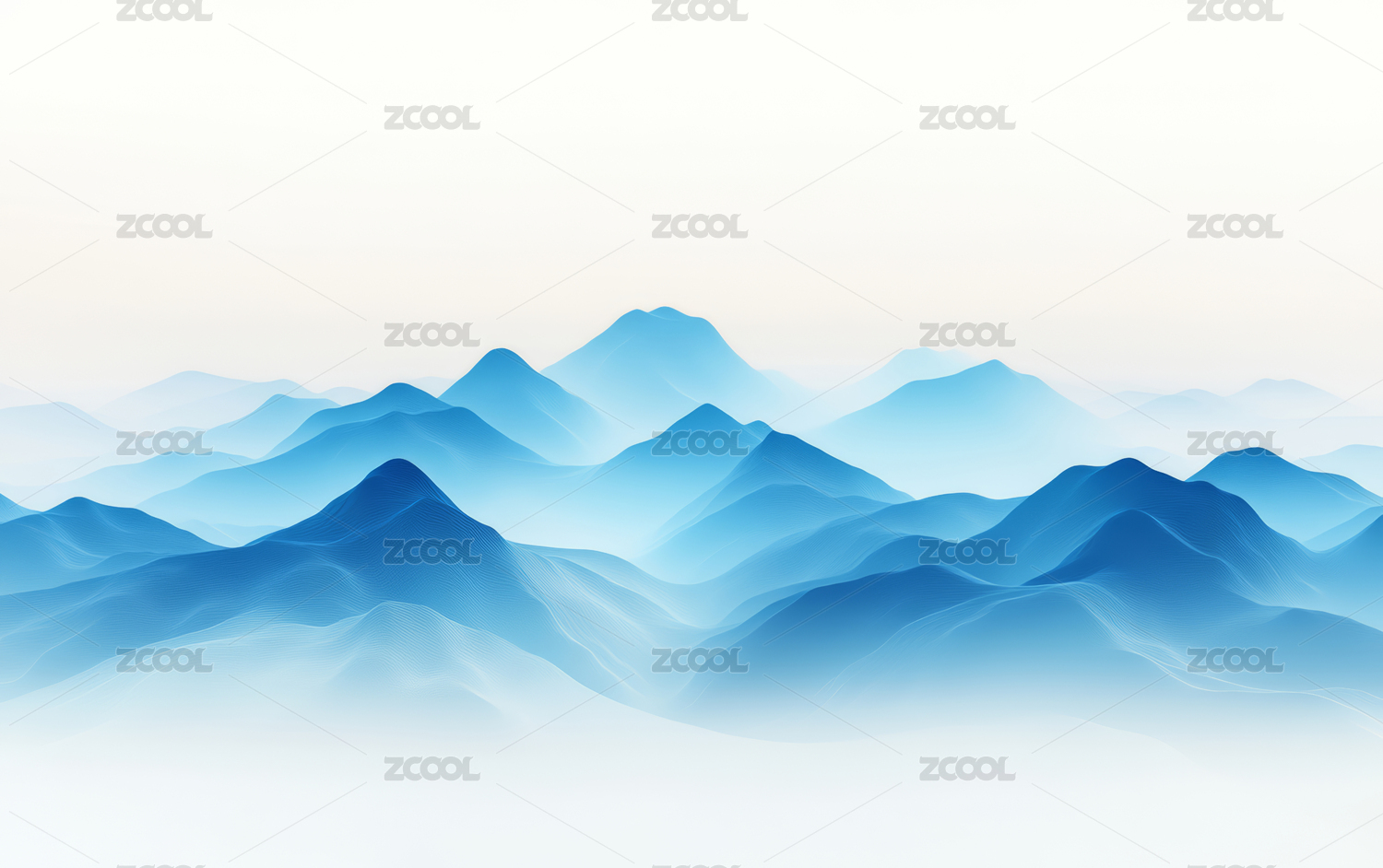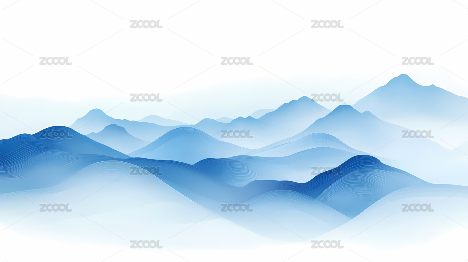 蓝色波浪山脉抽象背景,简约而富有层次感
