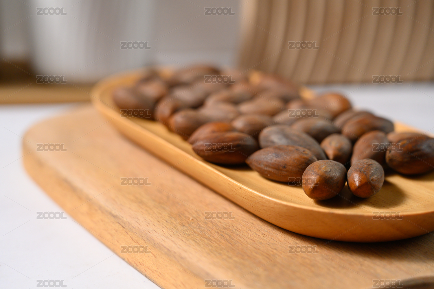 桌面上的盘子里的干爽的香榧