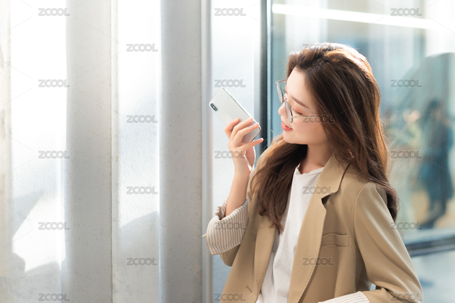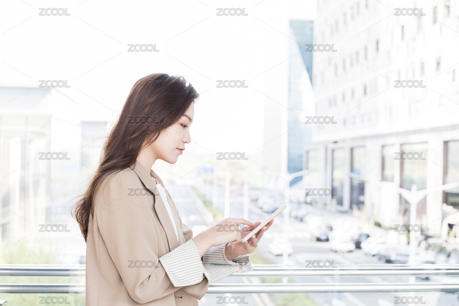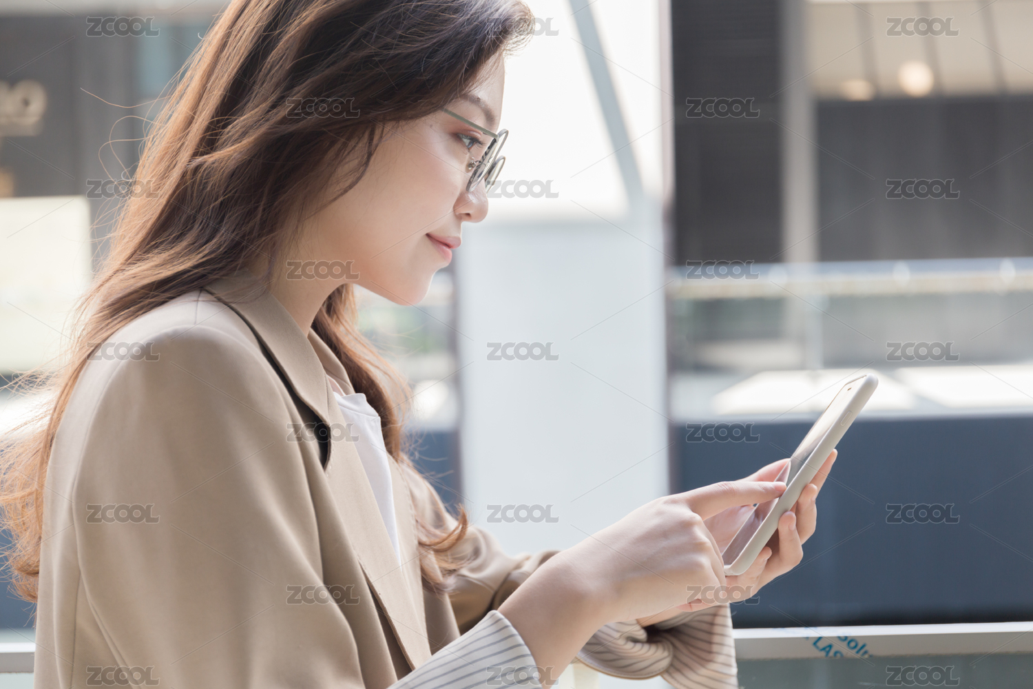 年轻商务女士在使用手机