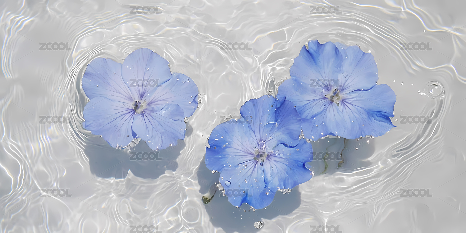 水中漂浮的蓝色花朵