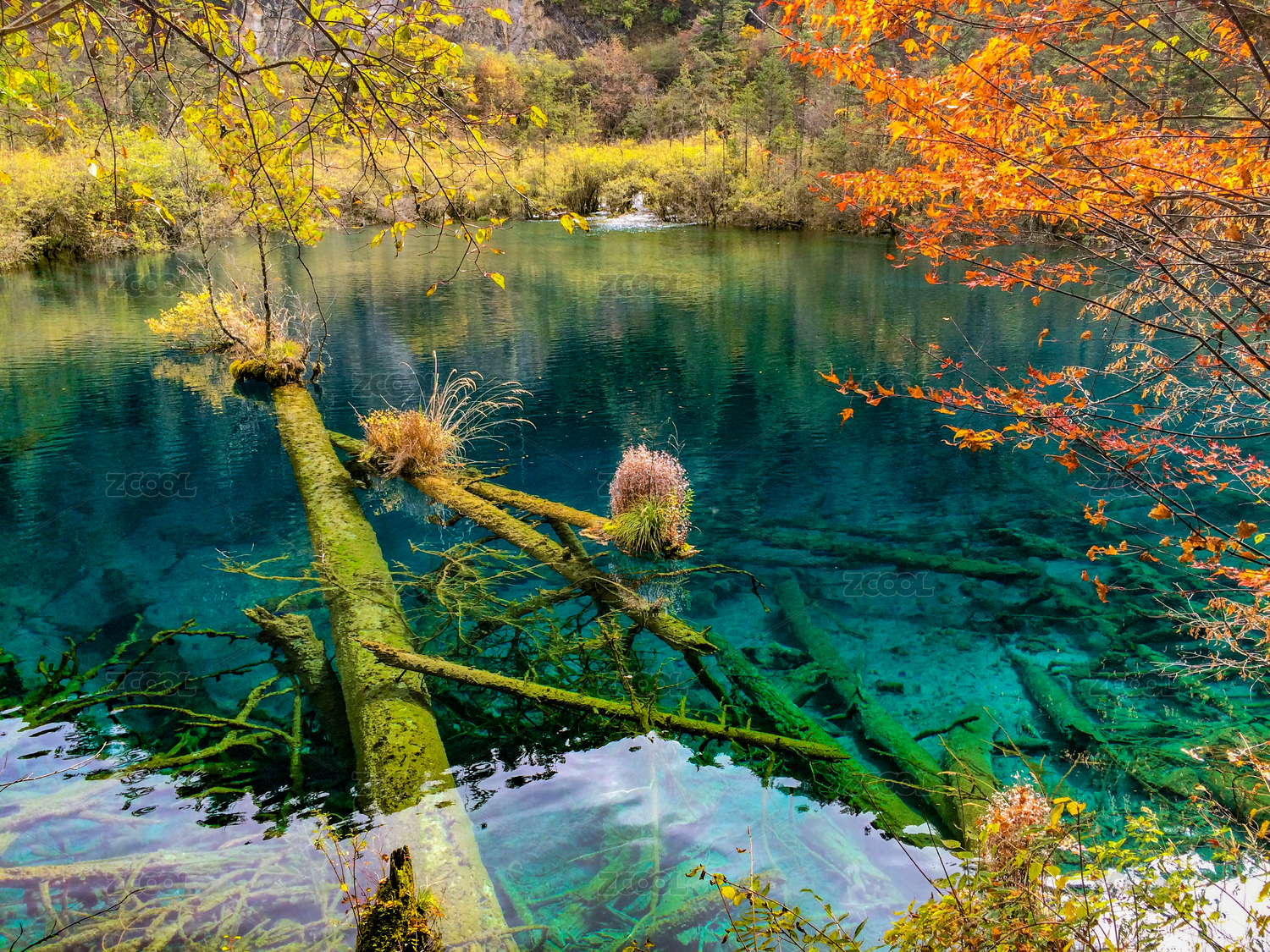 四川,九寨沟,秋季,秋景,水,湖泊,海子,钙化,倒影,阿坝