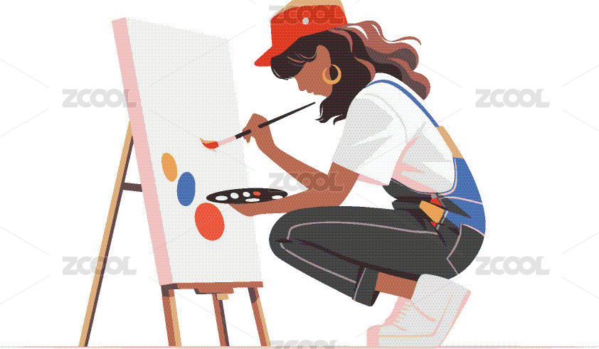 扁平风画画的涂鸦女孩绘画美术课暑假兴趣班
