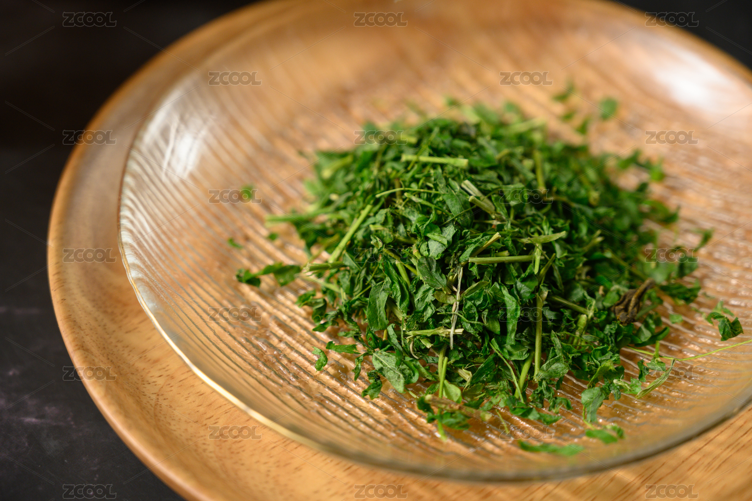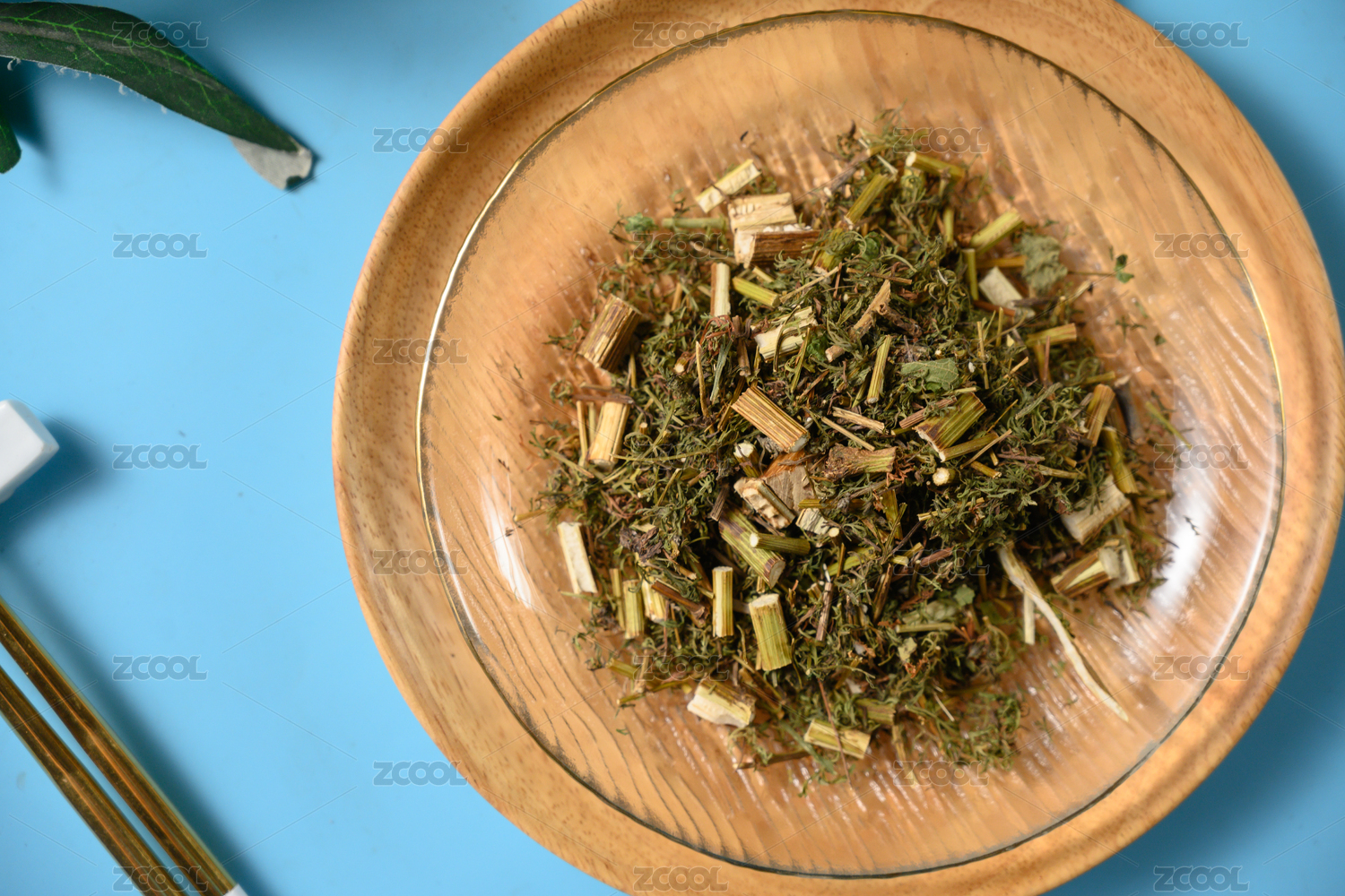 桌面上的盘子里的干爽的青蒿草