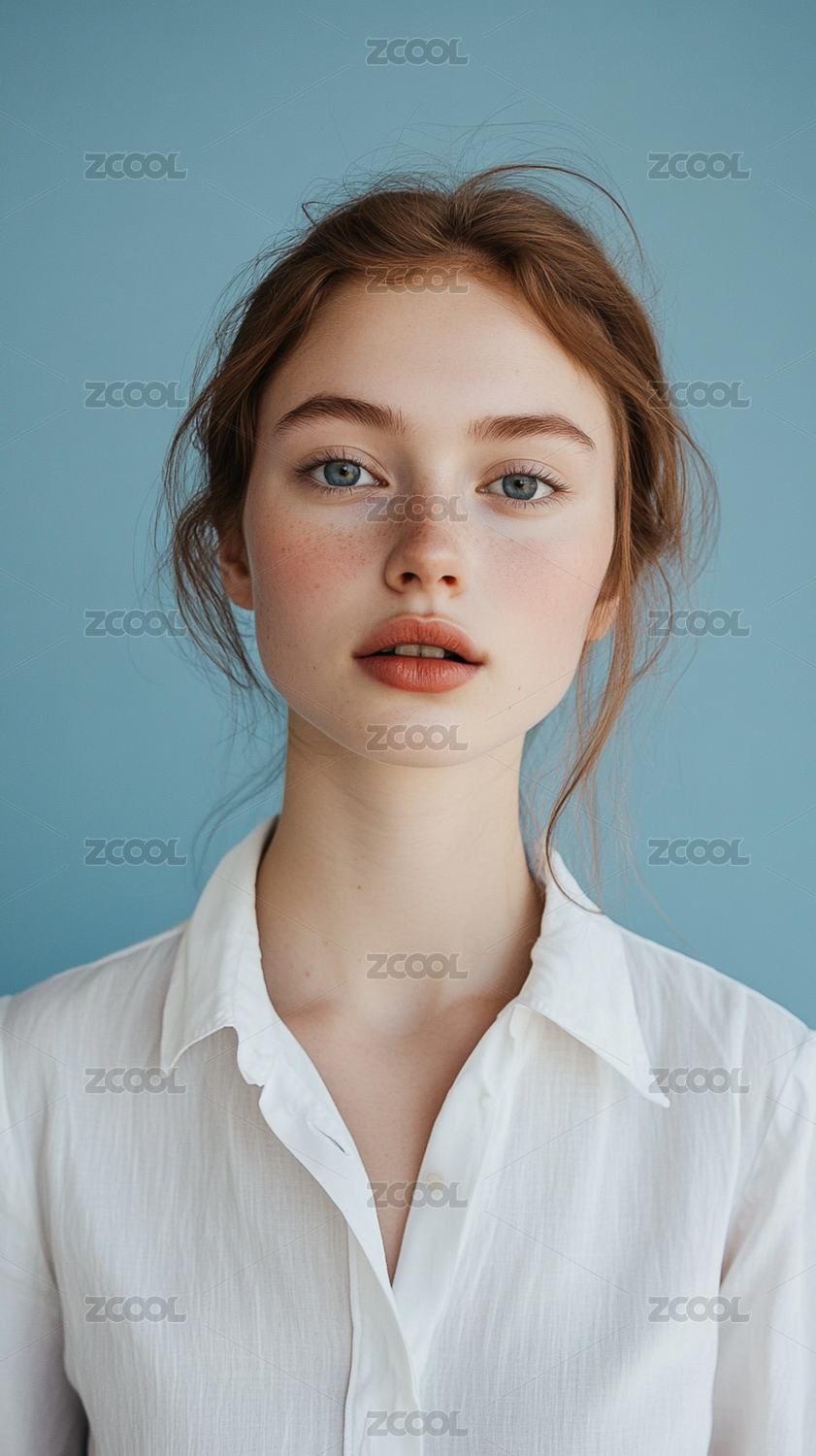 浅色背景欧美年轻女性人像