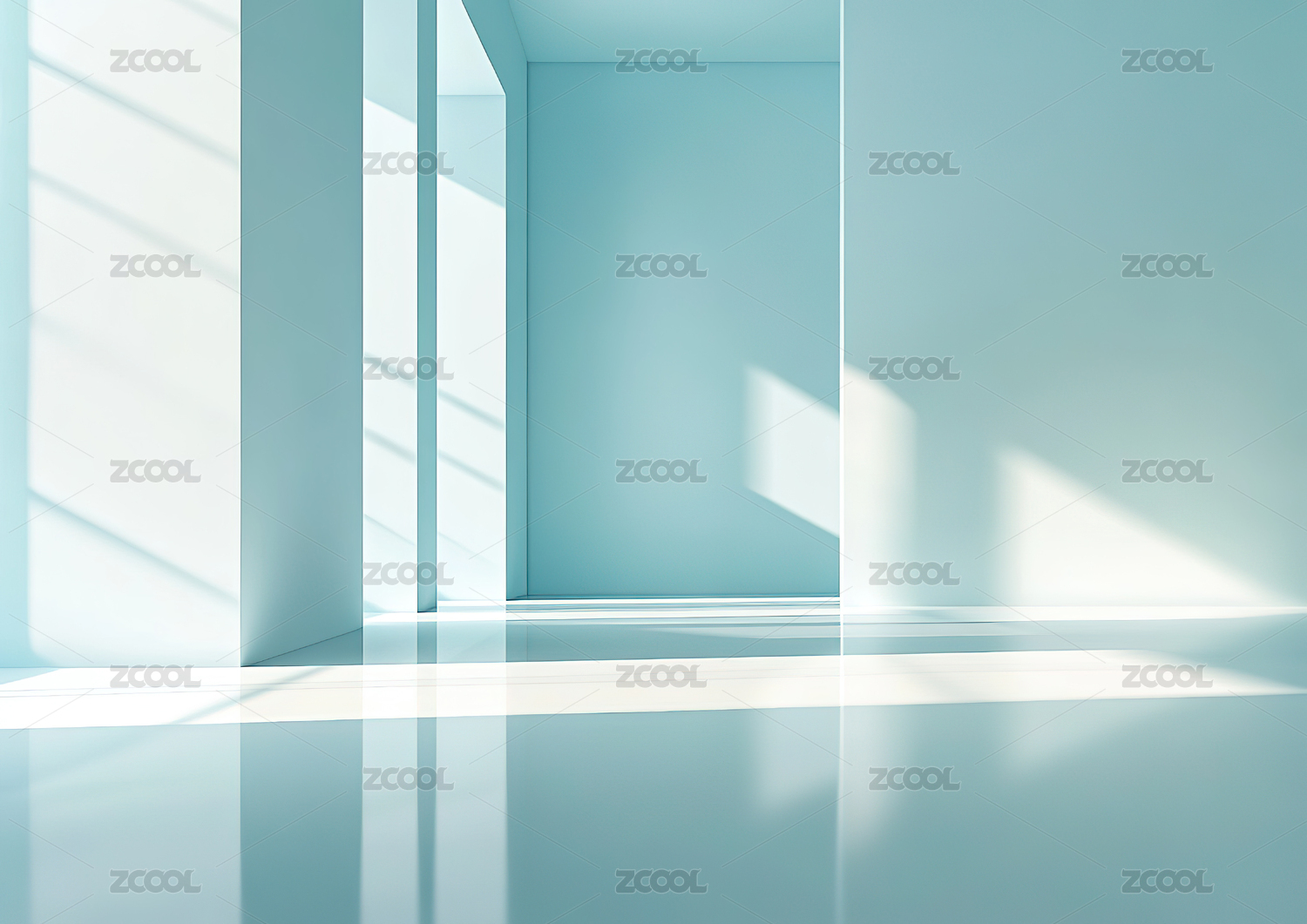 蓝色,现代,设计,宁静,明亮,室内,房间,空间,简约,阳光