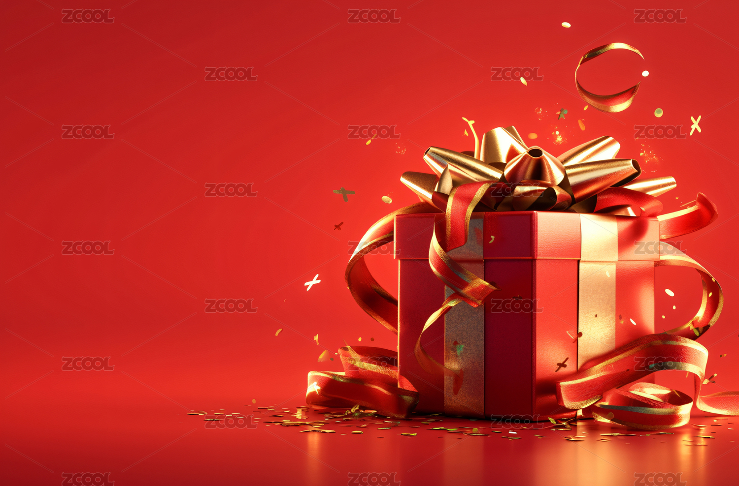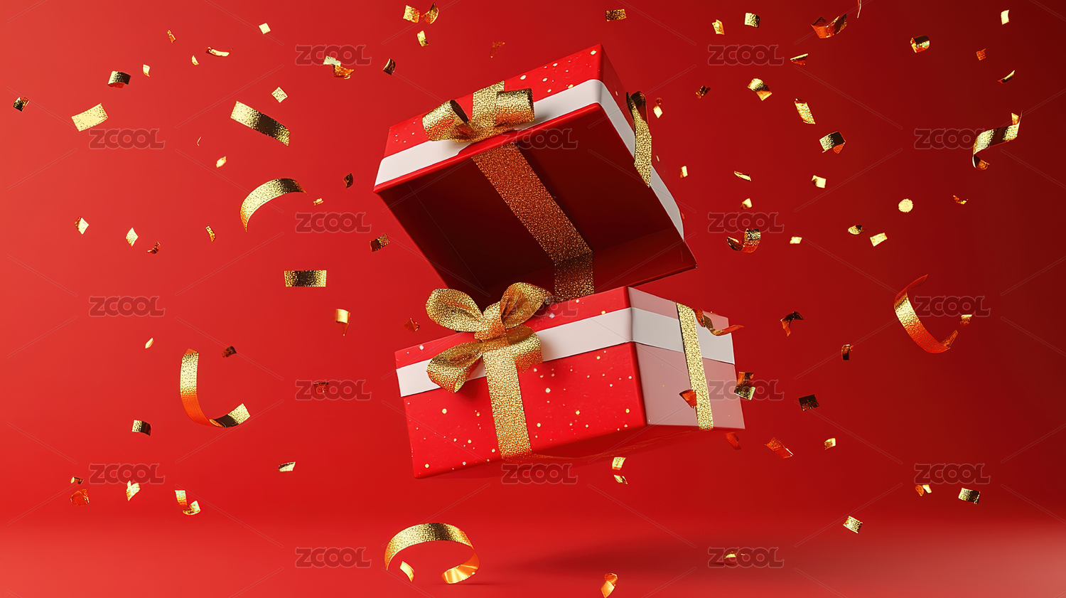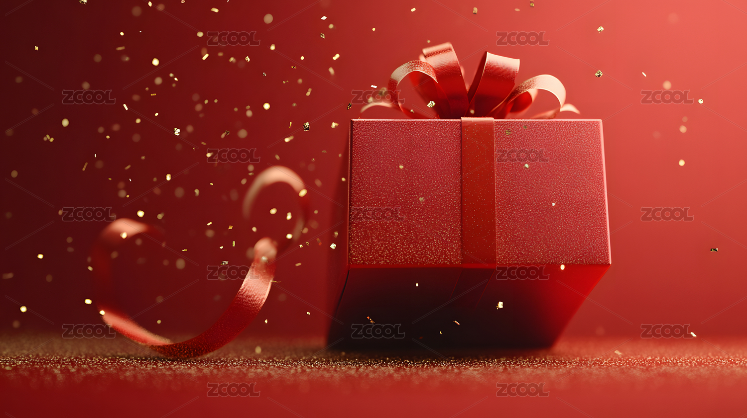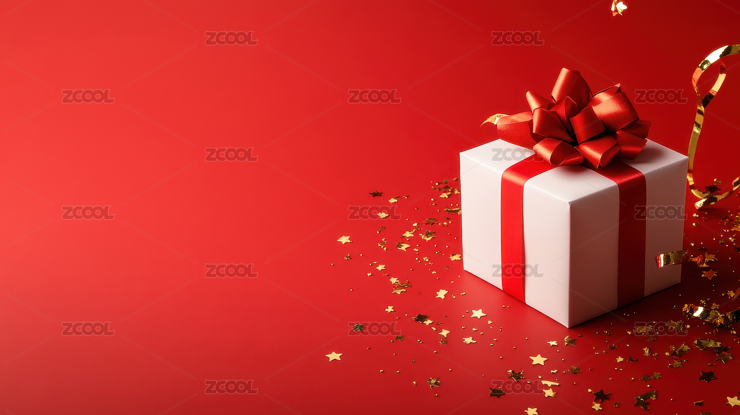 红色背景,节日,礼物盒,蝴蝶结,丝带,星星,五彩纸屑,庆祝,惊喜,礼物