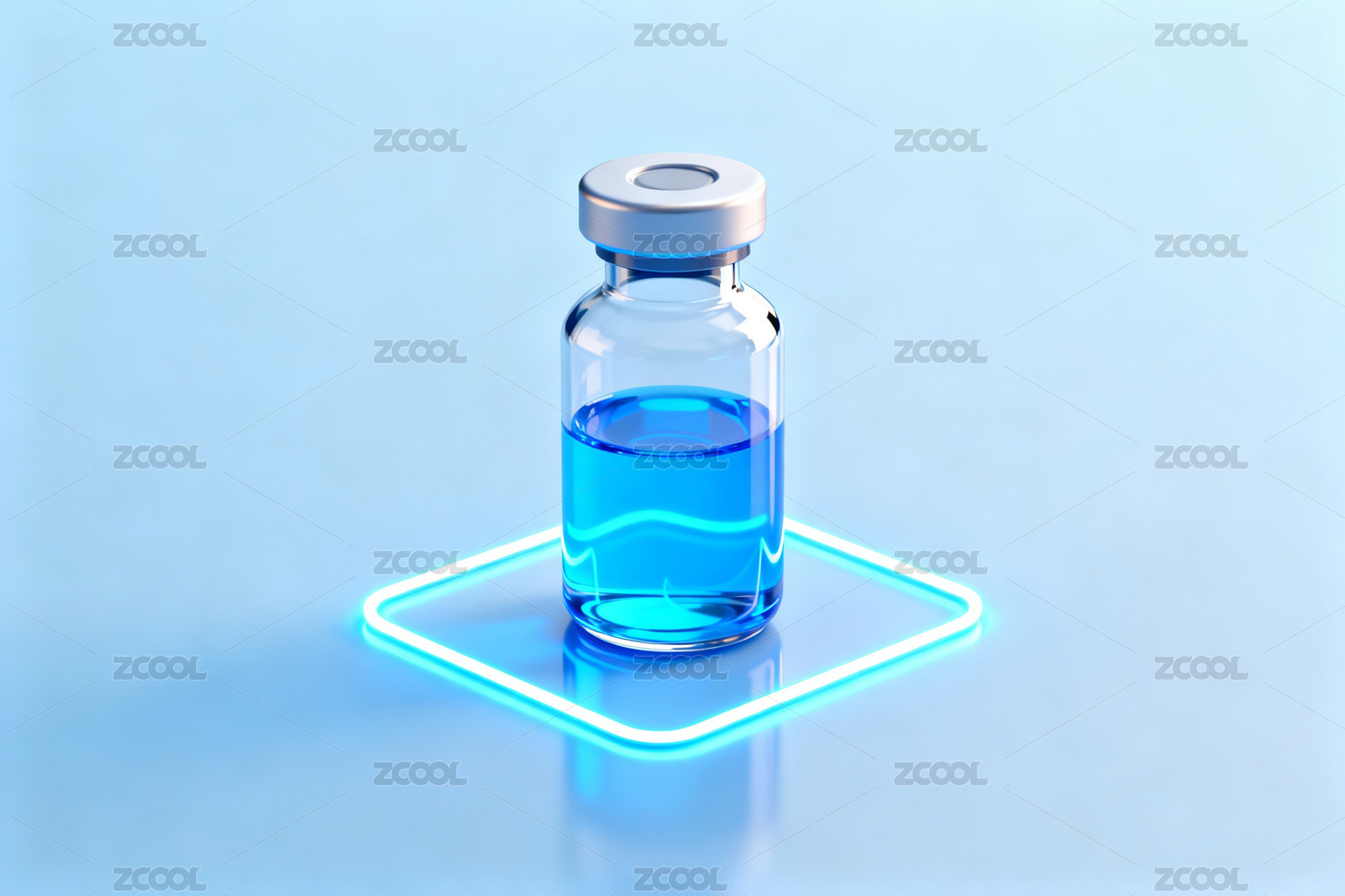蓝色药瓶置于发光方框
