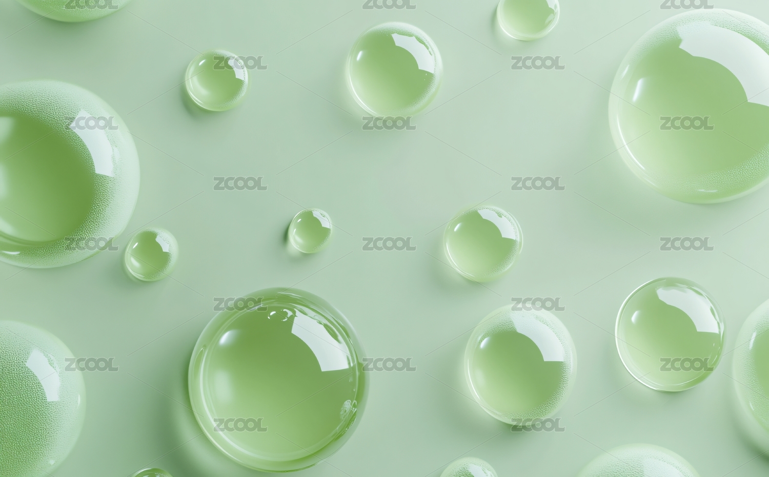 科幻感绿色透明果冻般圆球气泡3D插画背景