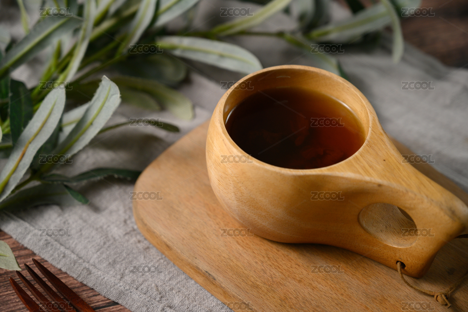 桌面上的杯子里的甘甜可口的秦皮茶