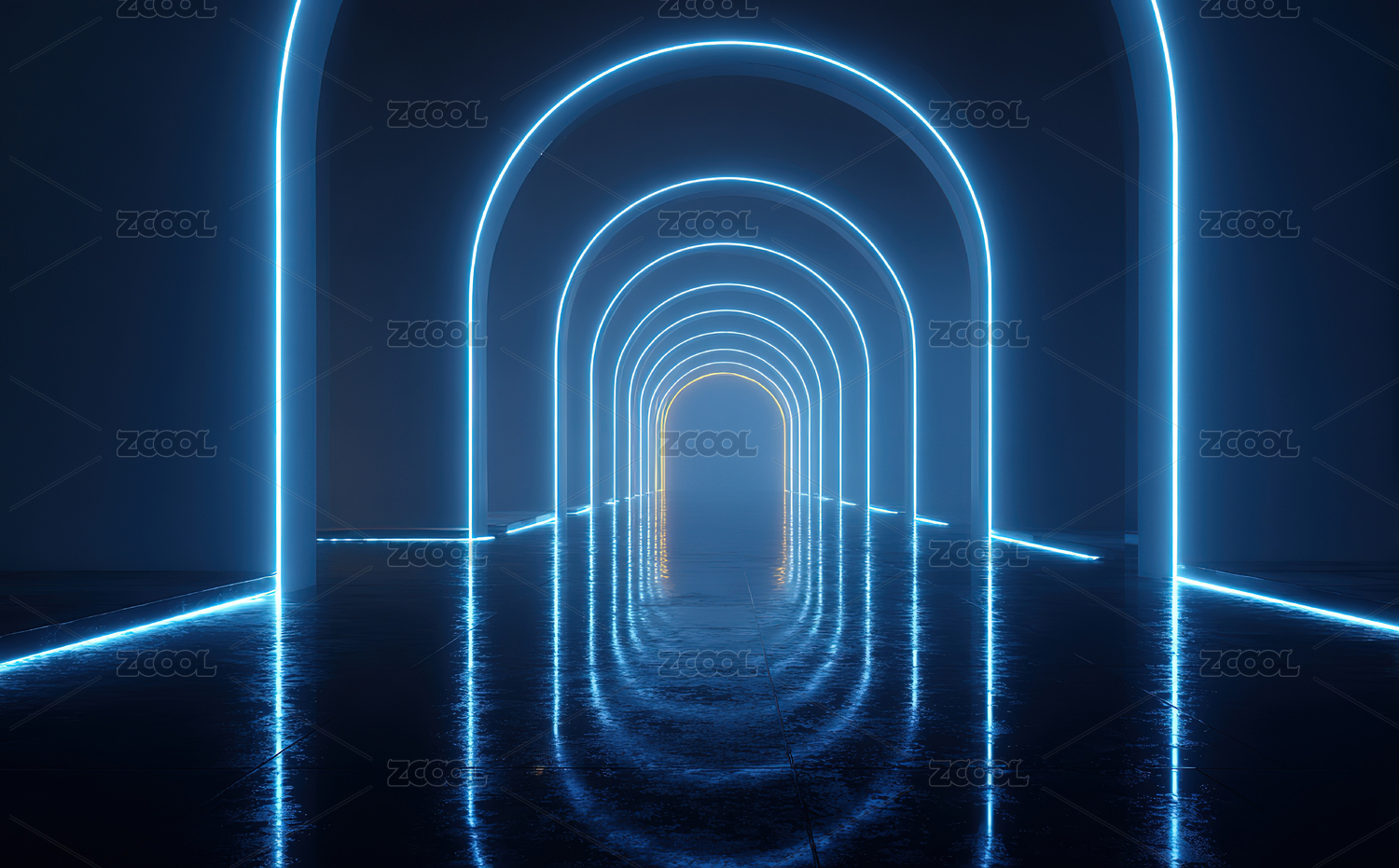 蓝色荧光拱门隧道