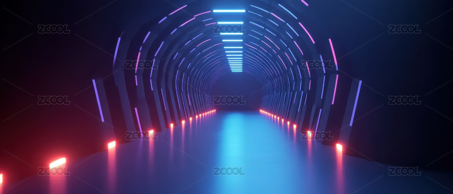 未来科技感的霓虹灯隧道