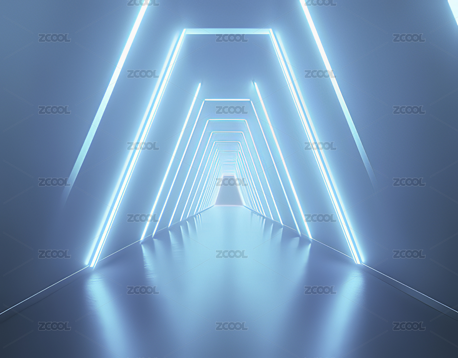 蓝色光隧道延伸至远方