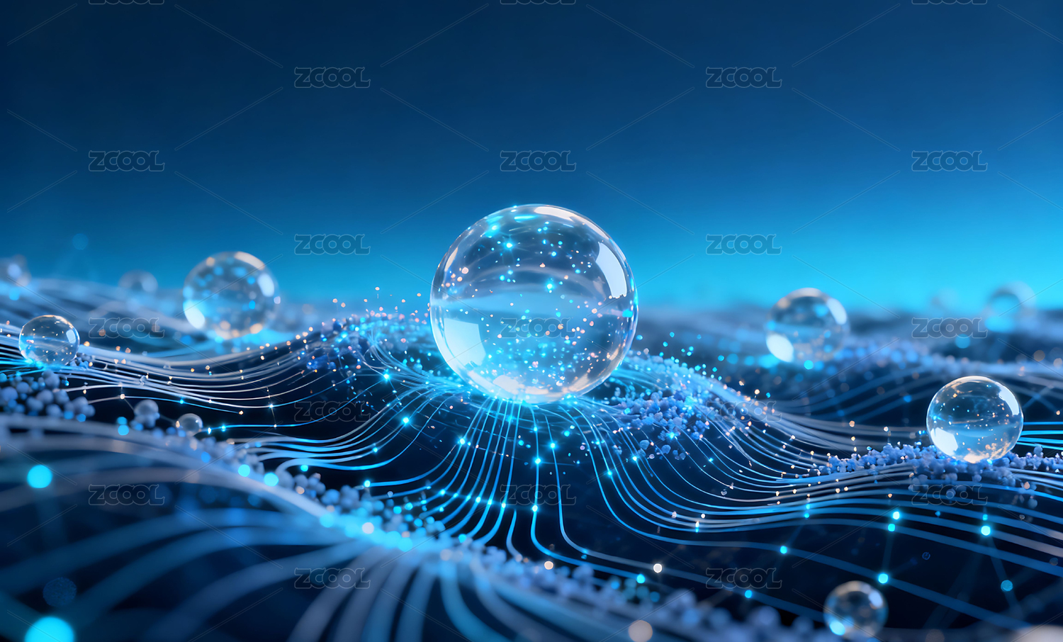 蓝色商务医疗水球细胞主视觉背景壁纸