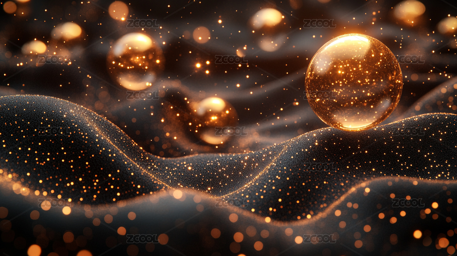 黑金色梦幻闪烁光斑与气泡的浪漫背景壁纸