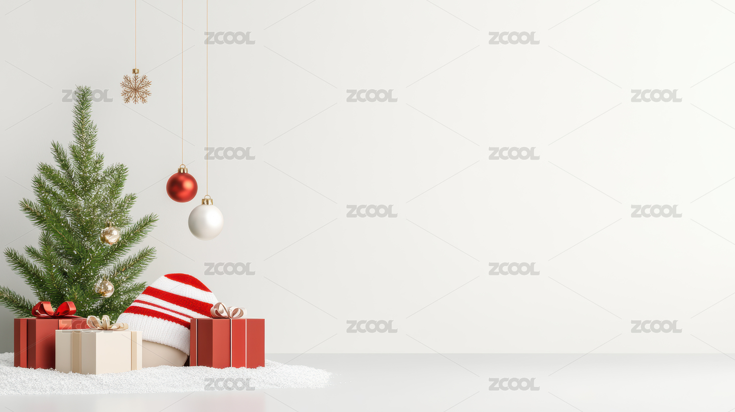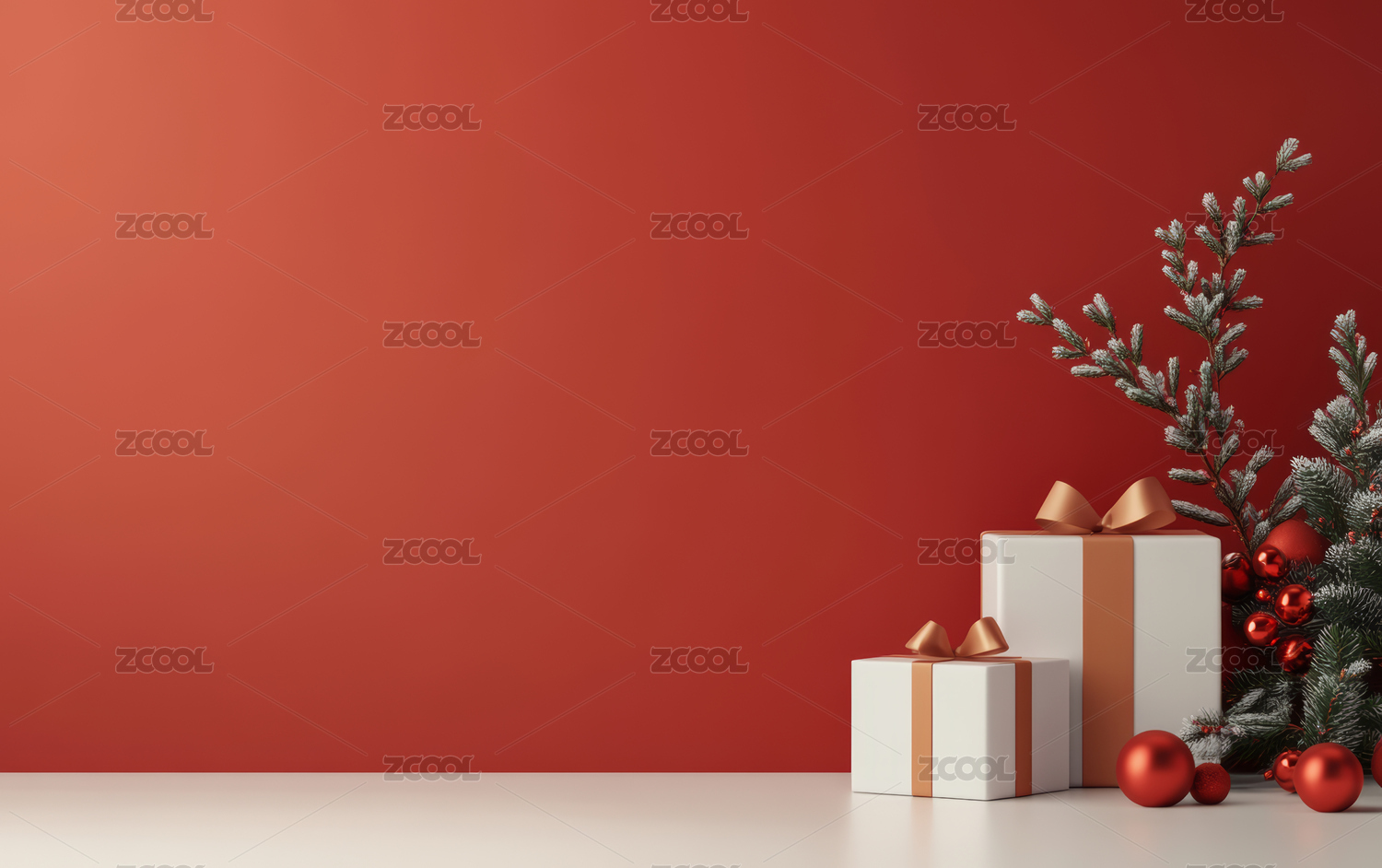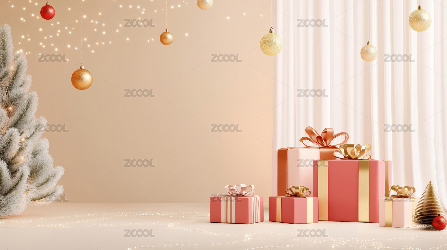 3D室内红色礼物装饰背景
