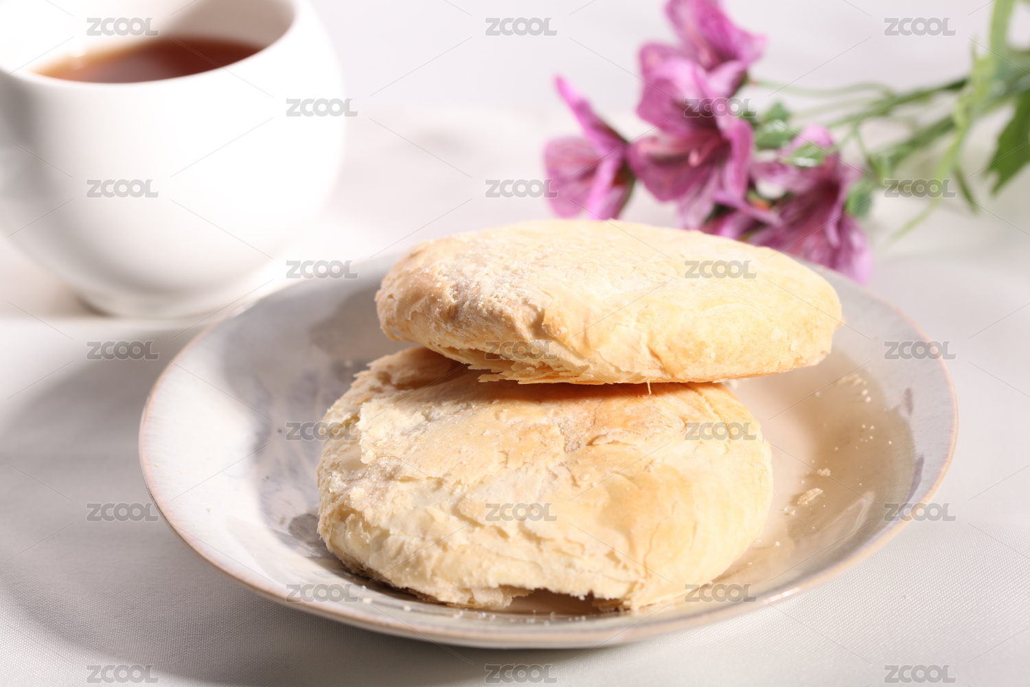 摆放在白背景上的一碟酥饼
