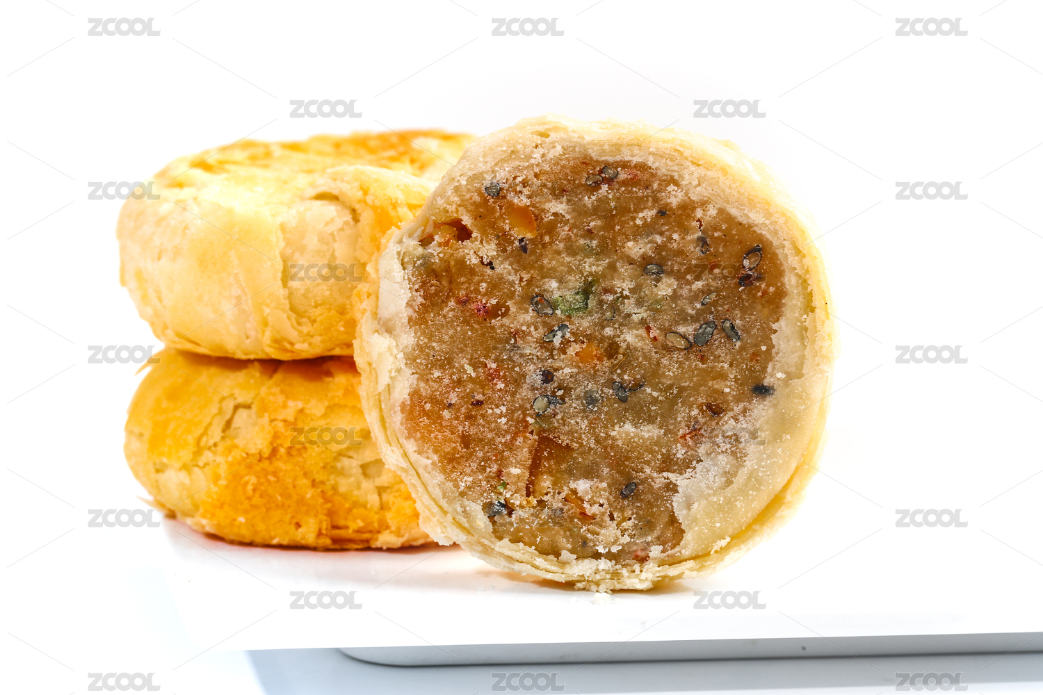 白石底上放着三块半边五仁月饼
