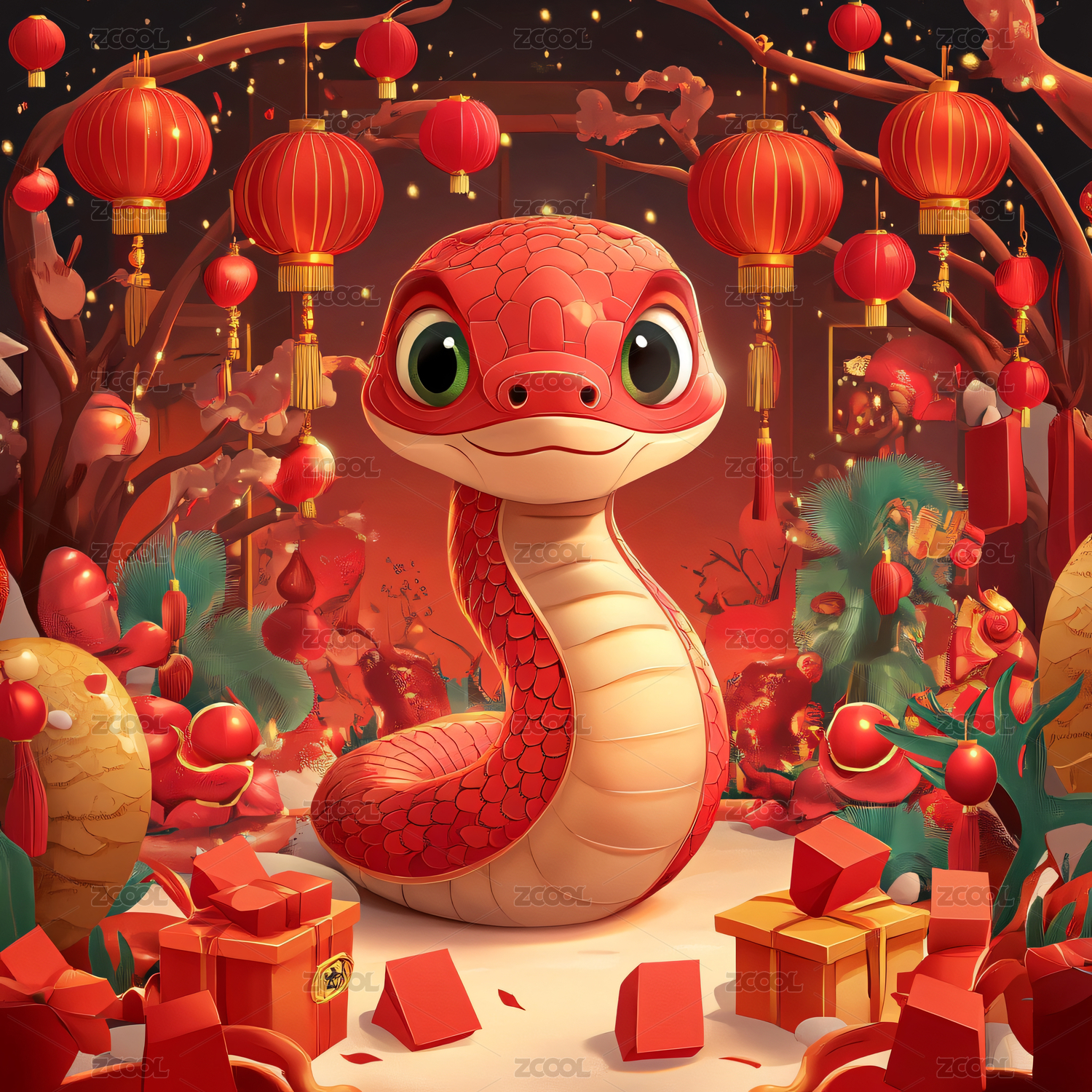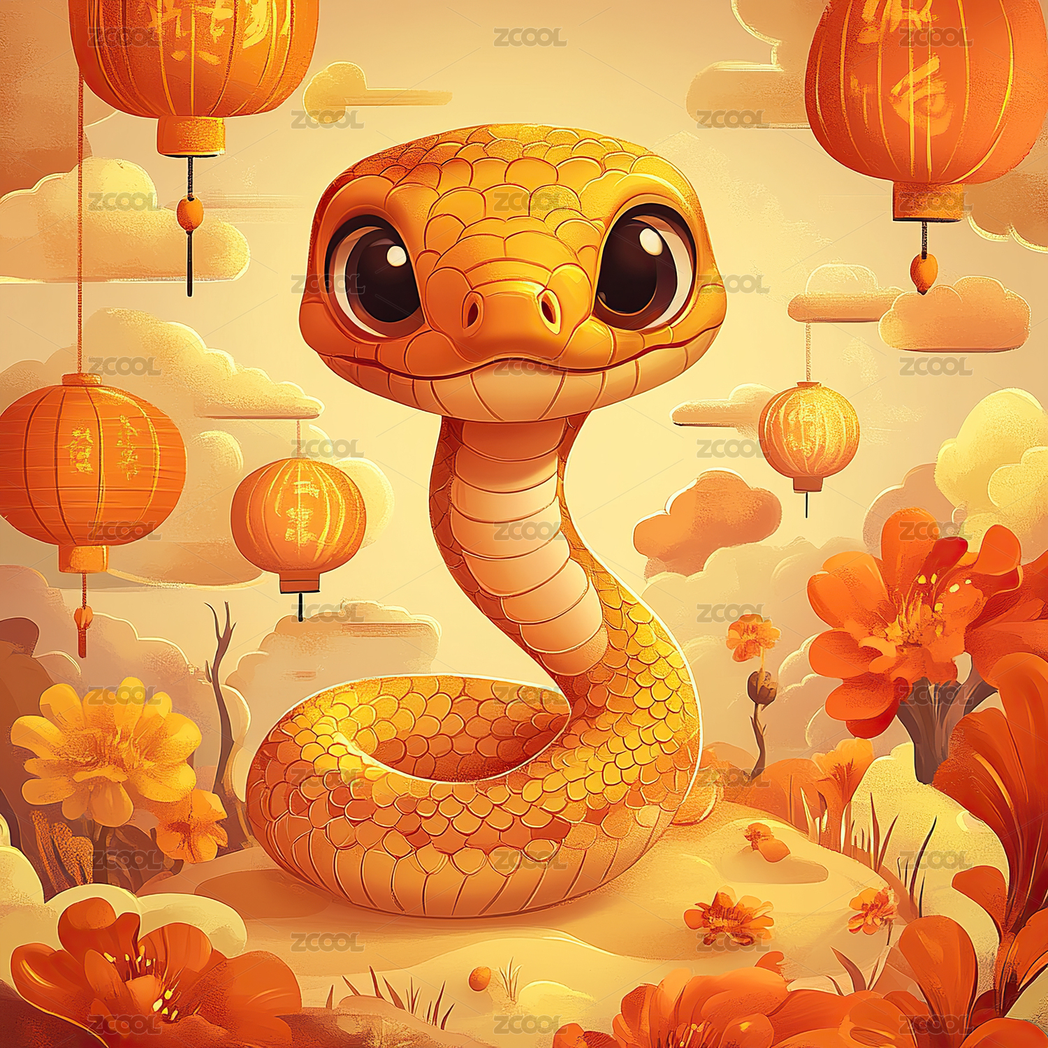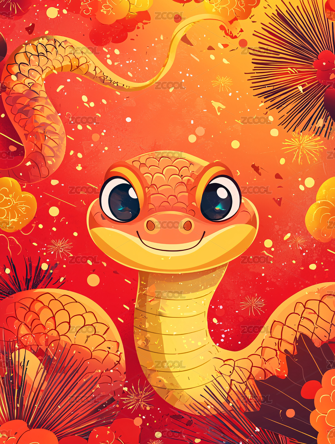 2025春节金蛇宝宝蛇年可爱吉祥物年画