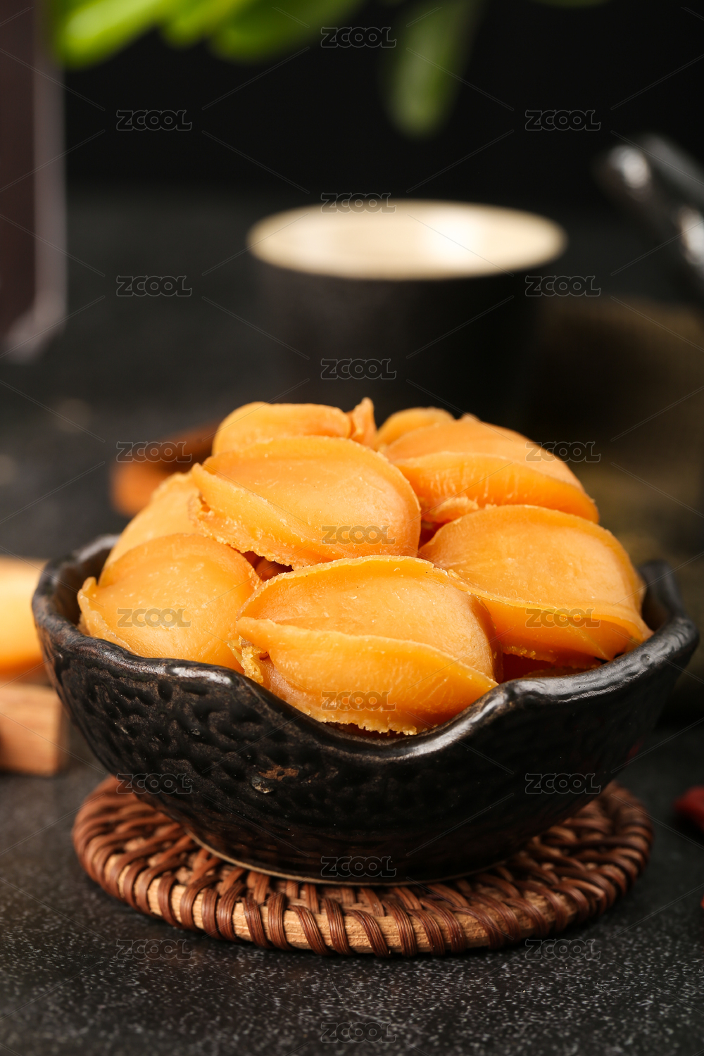 木盘里放着一盘深海野生鲍鱼干