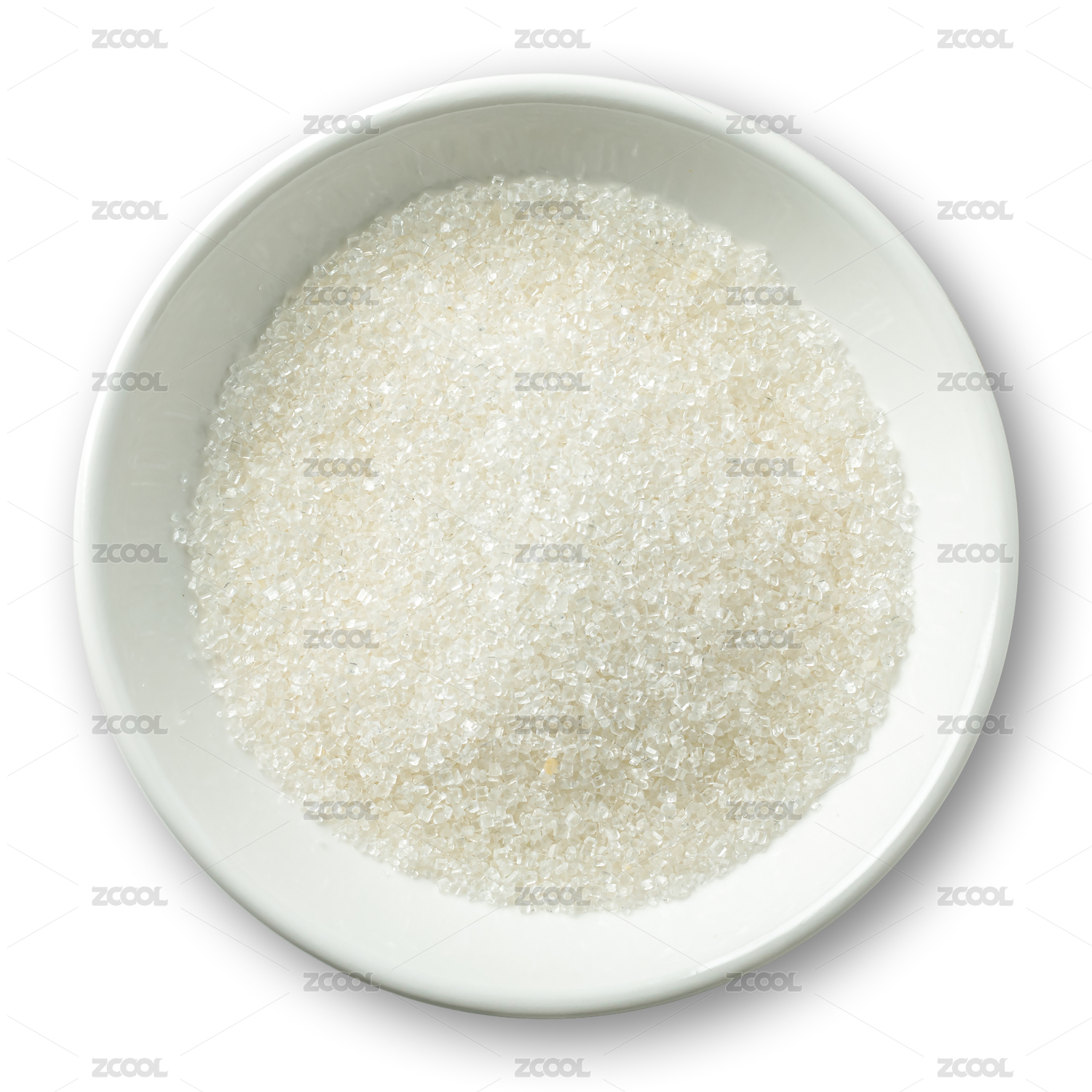 白色背景上碗里的白糖
