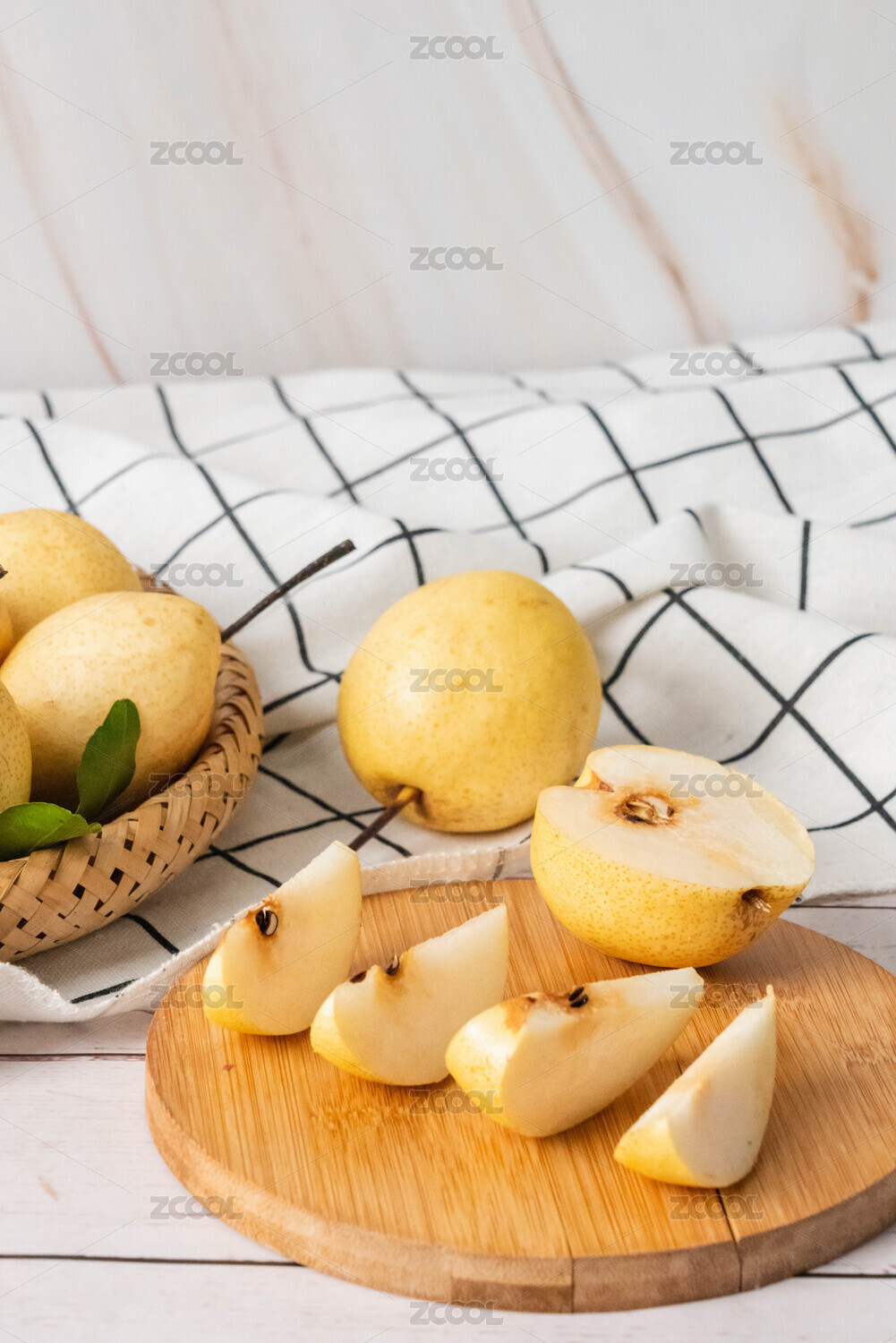 盘子里放着一个削皮的脆甜雪莲果和两块雪莲