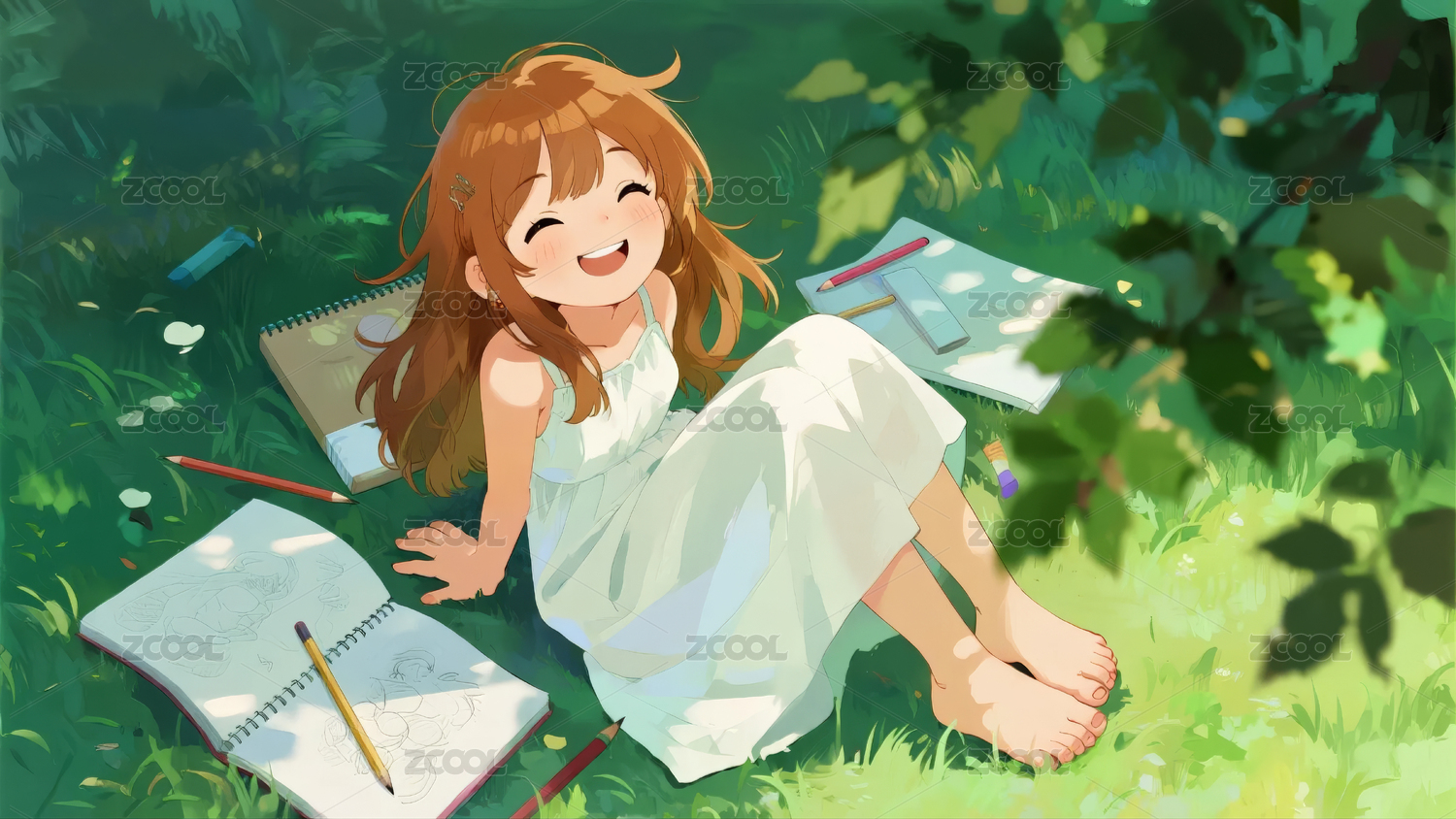 插画,春,男孩,运动,草地,书本,篮球,小清新,惬意,阳光