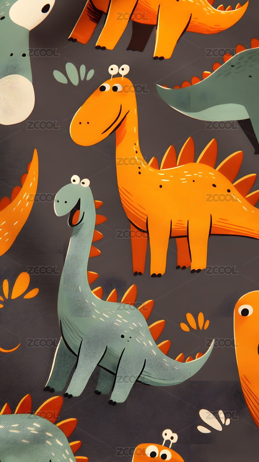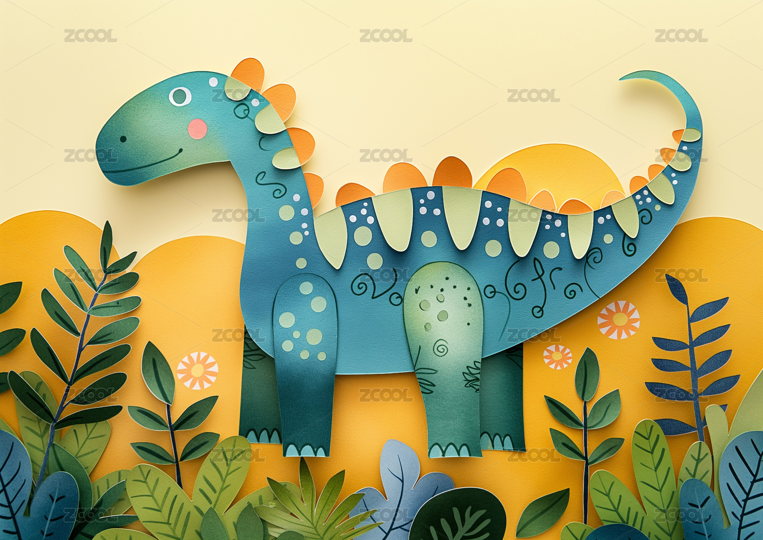 数码水彩幼儿风格恐龙图案装饰抽象图形海报