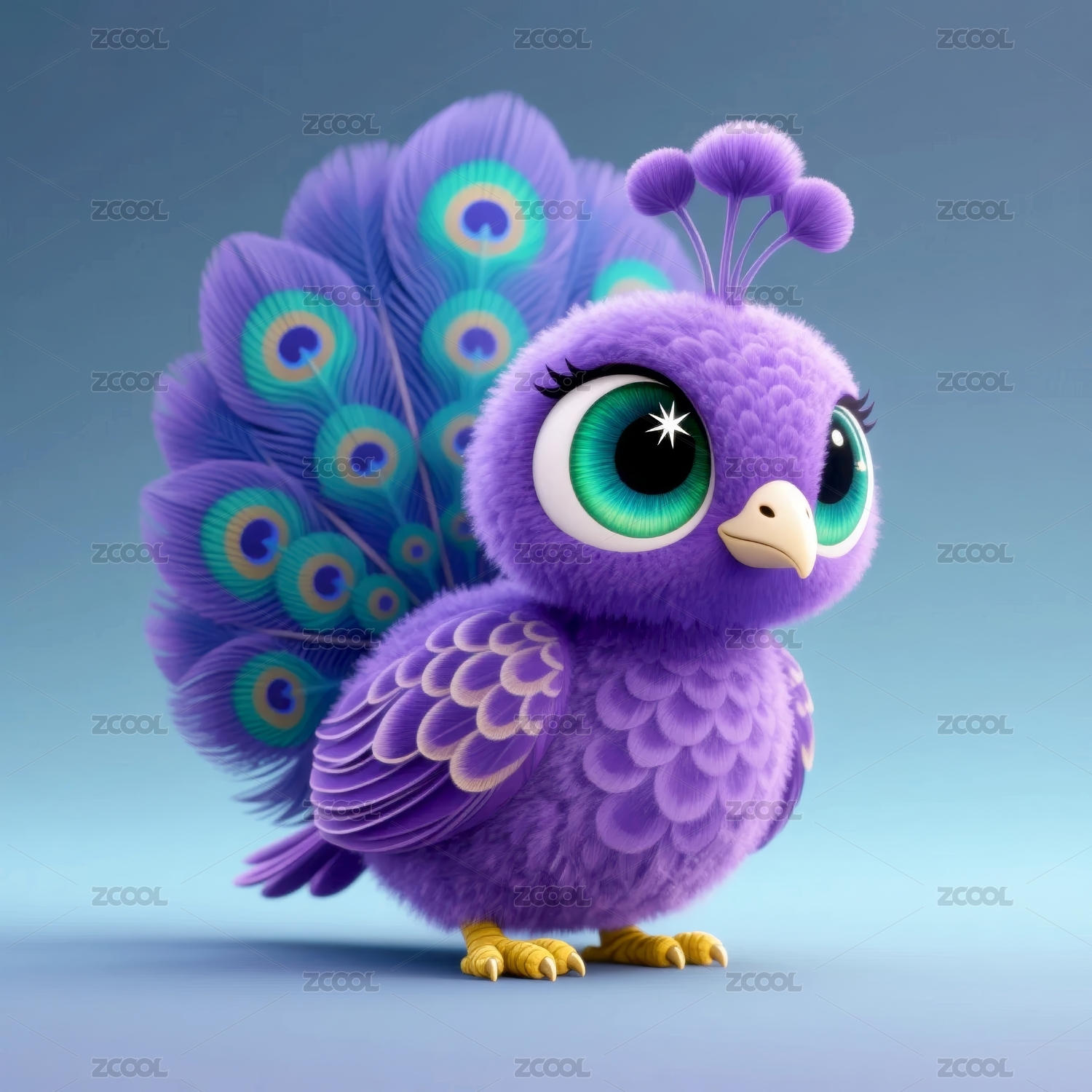 卡通风格可爱孔雀