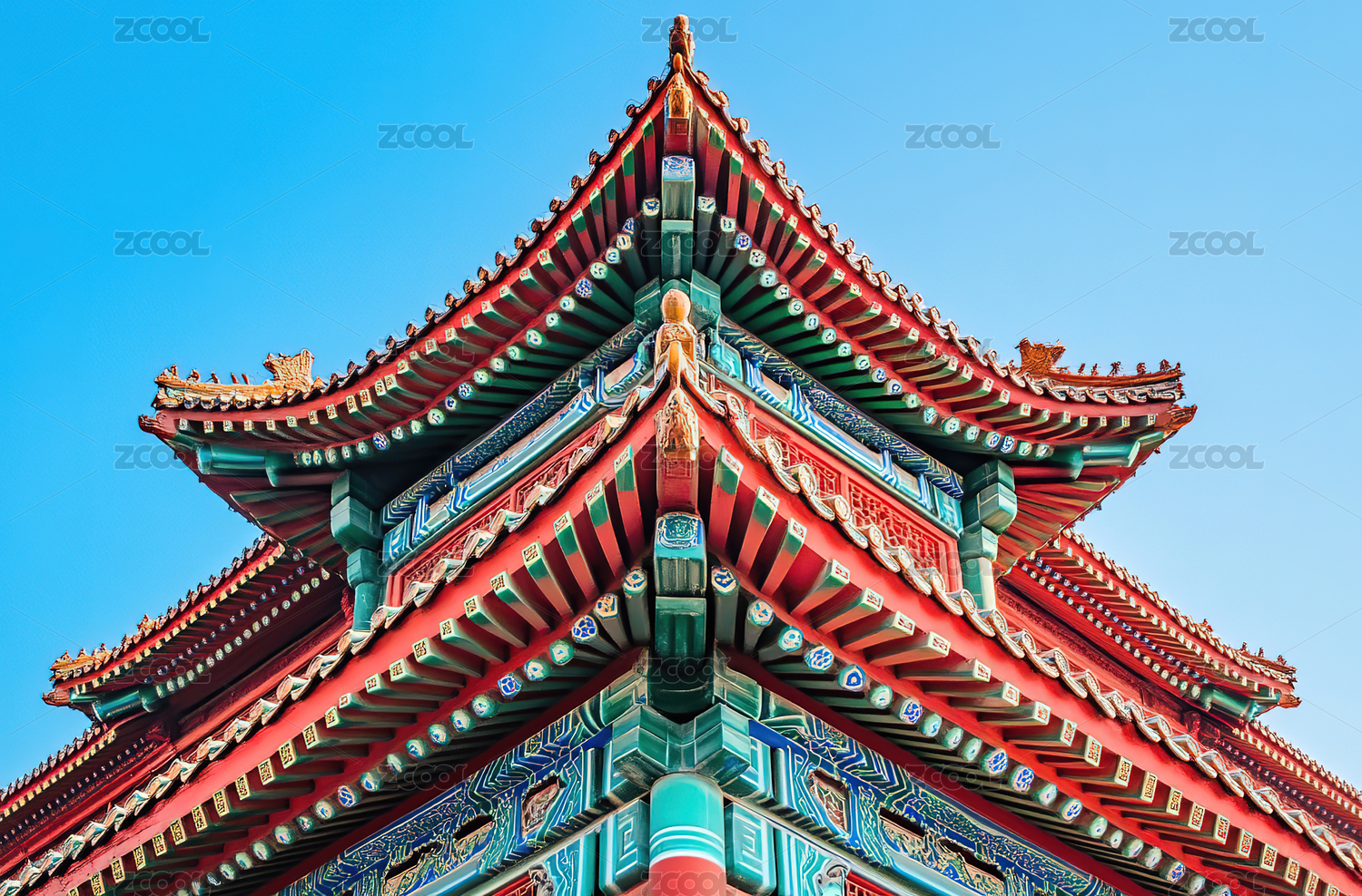 宫殿上的彩绘飞檐斗拱景观