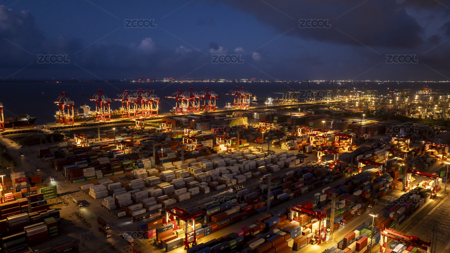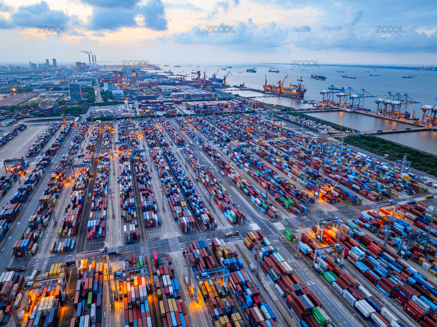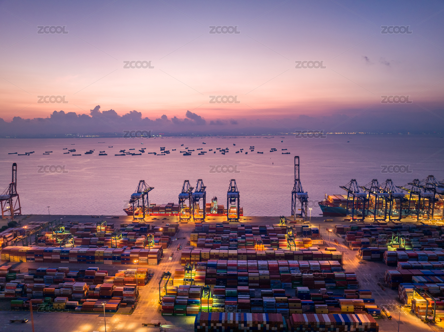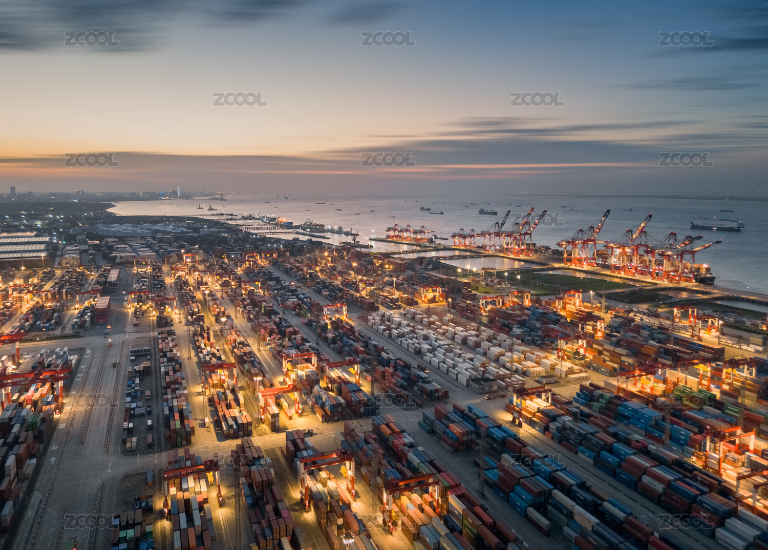 中国,浙江,舟山,嵊泗,洋山港,港口,海运,航拍,火烧云,日落