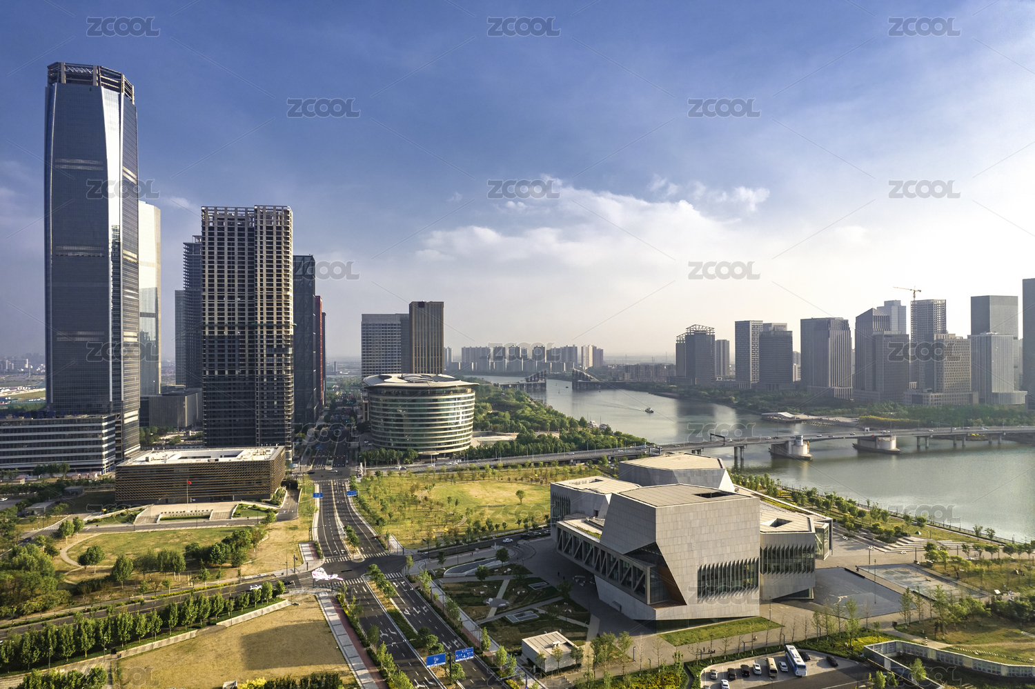 航拍,中国,浙江,杭州,滨江区,钱塘江,钱江世纪城,公园,城市,建筑