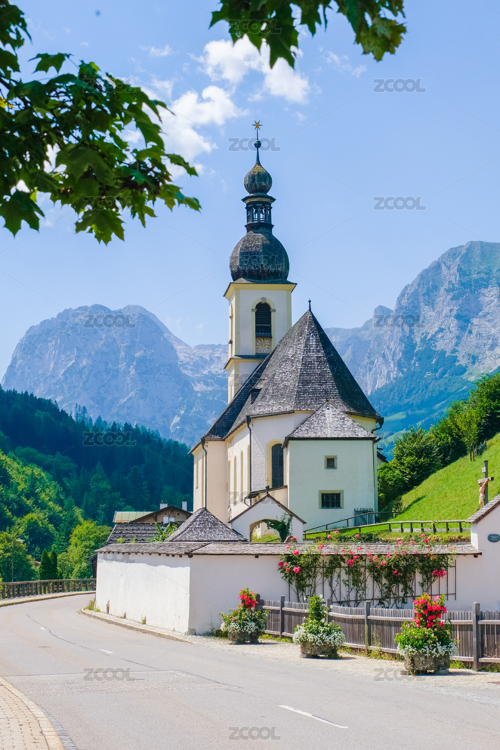 夏天,德国,德国湖区,户外,拉姆绍,拉姆绍小镇,拉姆绍教堂,教堂,欧洲小镇,风景