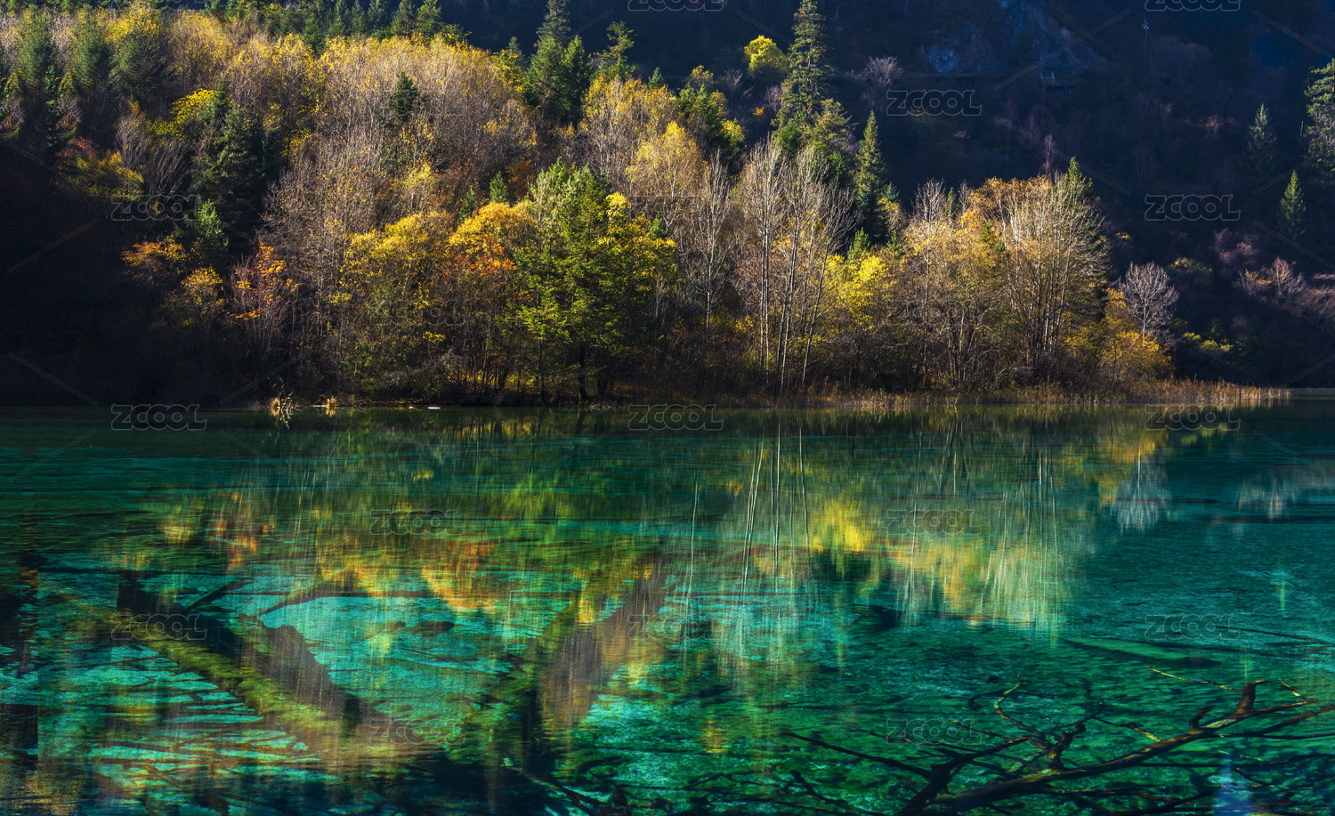四川,九寨沟,五花海,秋景,彩林,自然,风光,秋天,植被,湖水