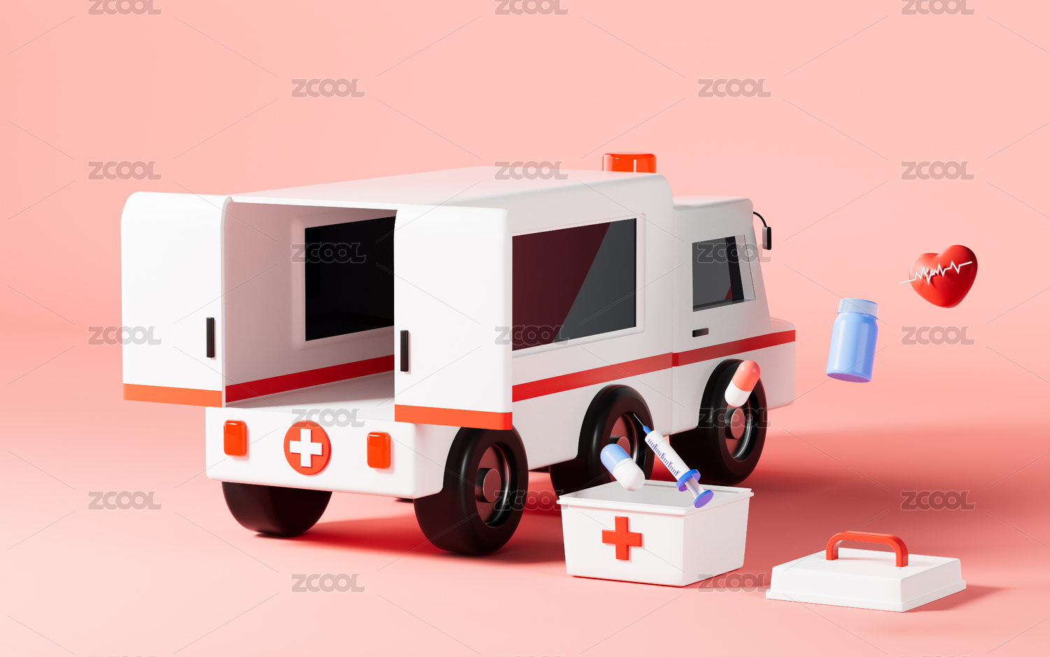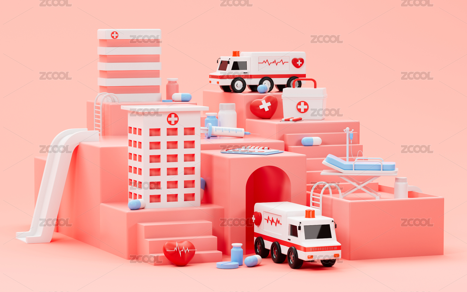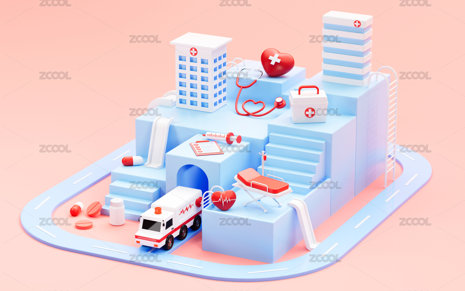 3D,插画,健康,治疗,背景,护理,蓝色,听诊器,心脏,注射器